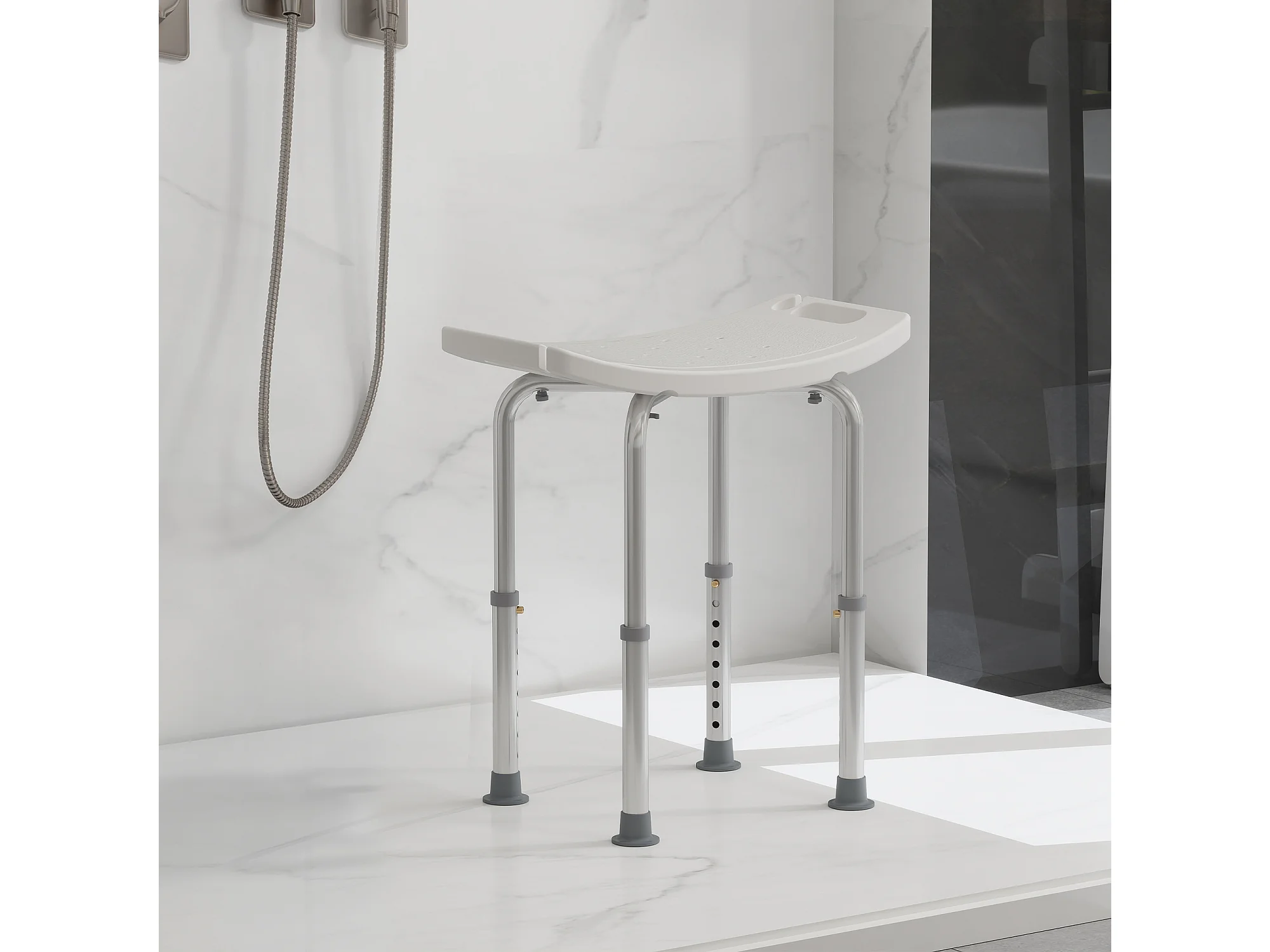 Sedia per doccia con altezza regolabile in alluminio bianco