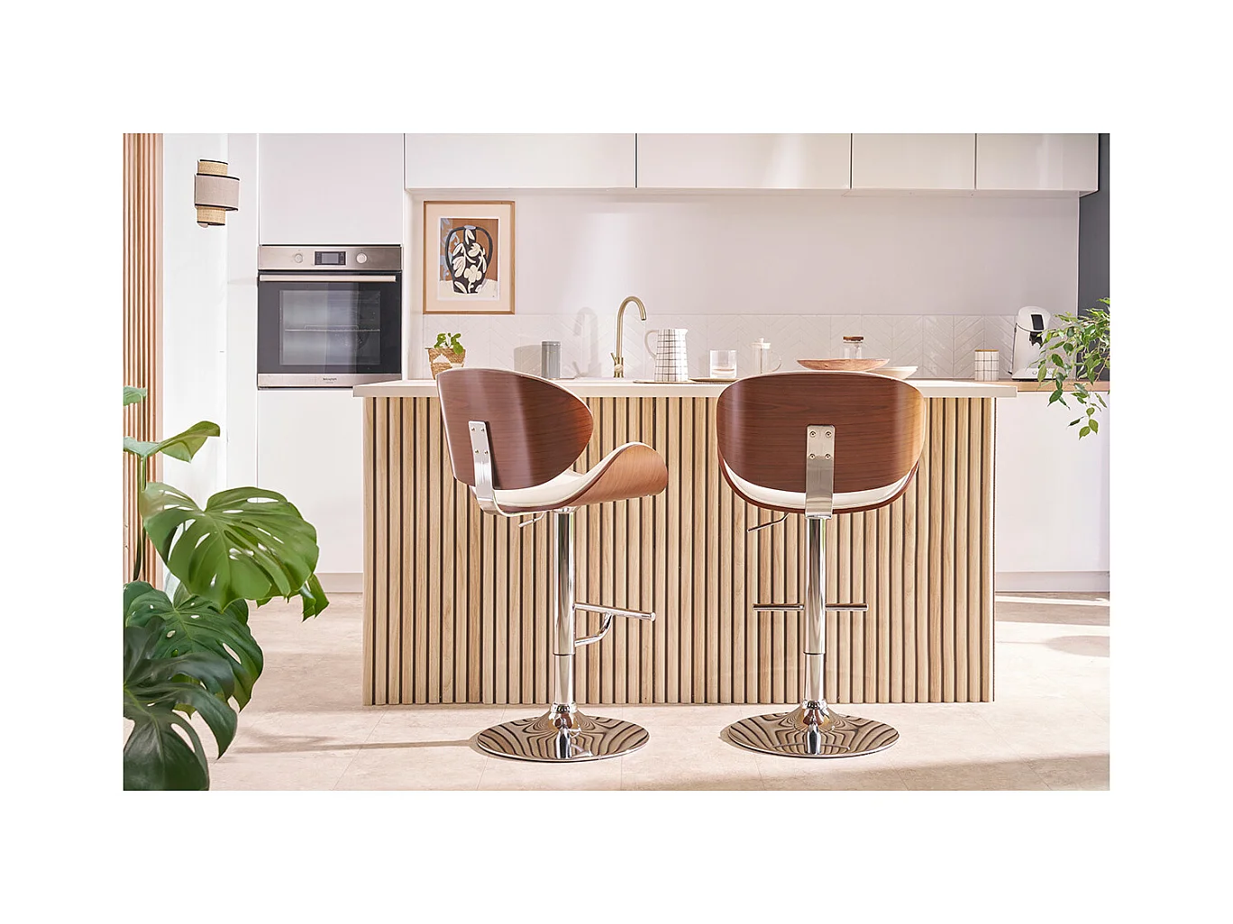Credenza, mobile bar girevole e retrattile con LED - scomparti e portaspezie - Bianco