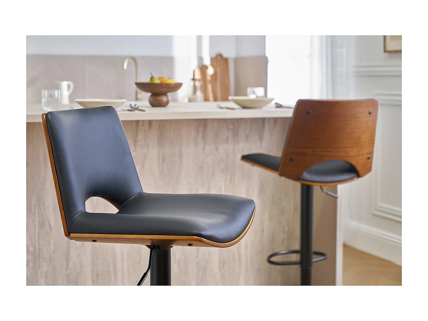 Sgabello da bar design regolabile nero e legno scuro PANACH