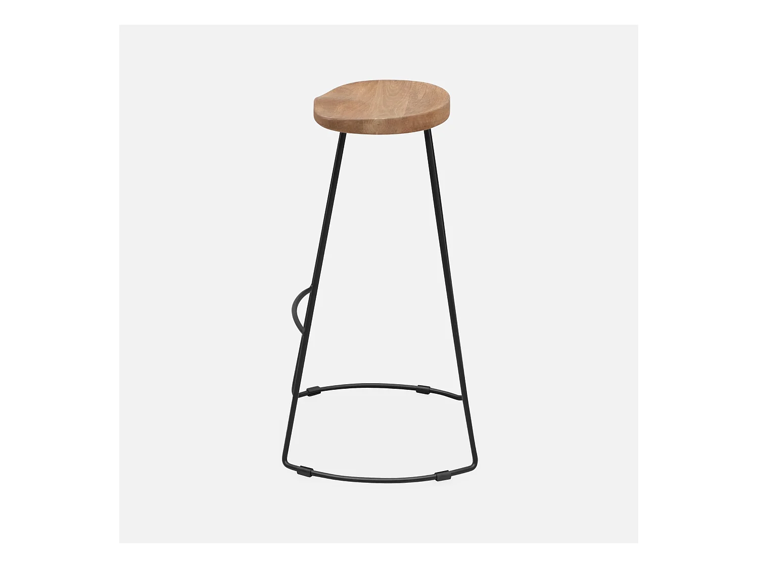 Set di 4 sgabelli da bar in legno di mango e acciaio, poggiapiedi,