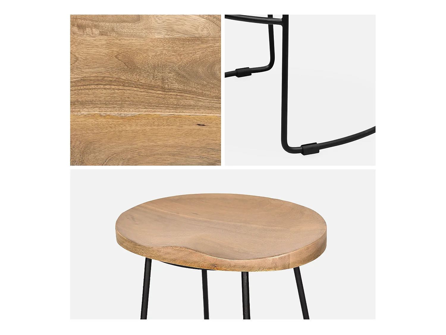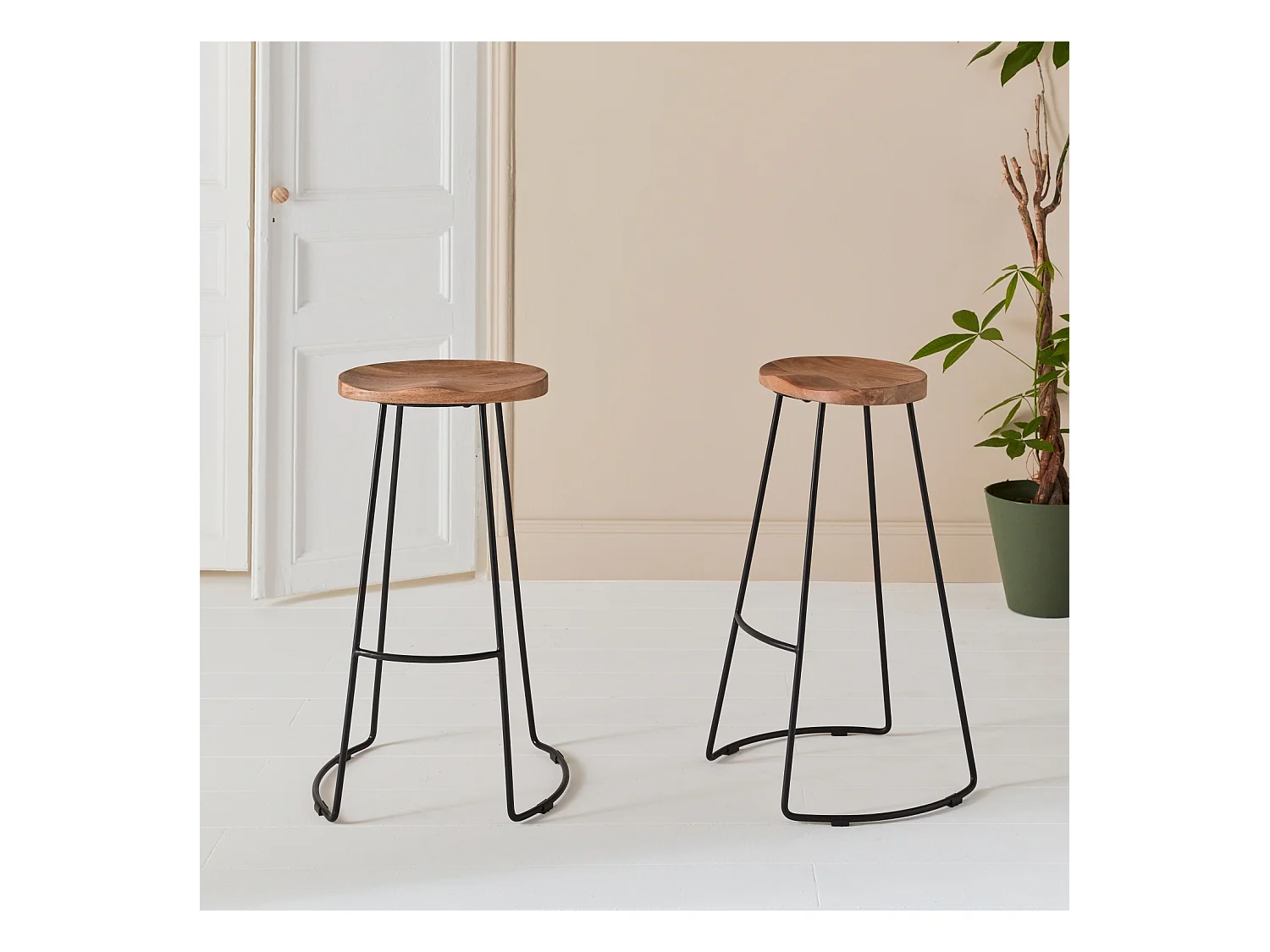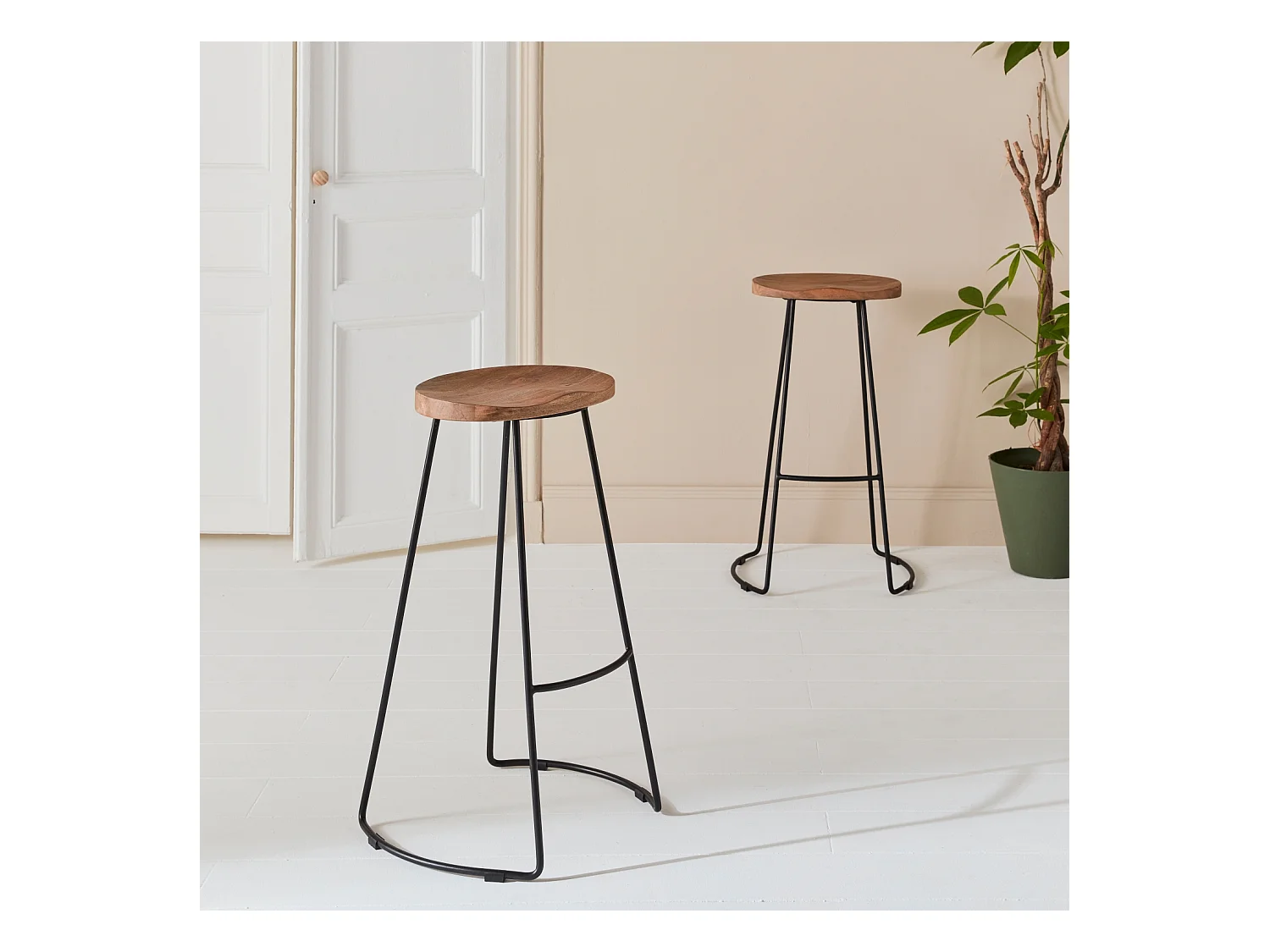 Set di 2 sgabelli da bar in legno di mango e acciaio, 75cm, marrone