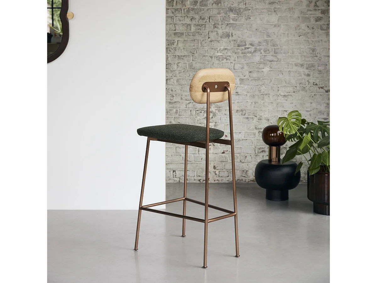 Sgabello da bar Yutapi cachi tweed in legno di quercia