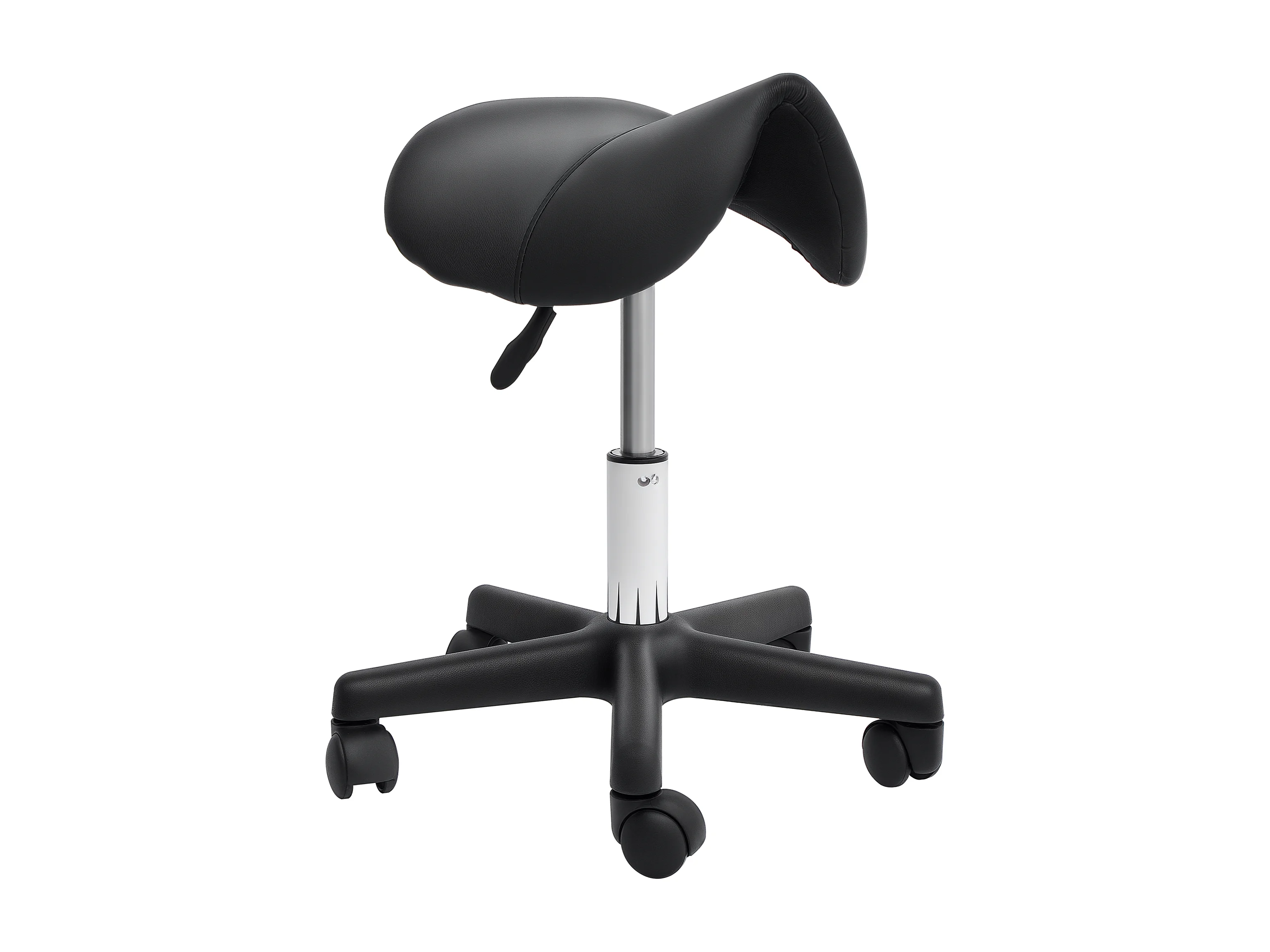 Sgabello girevole a sella con ruote con altezza regolabile nero