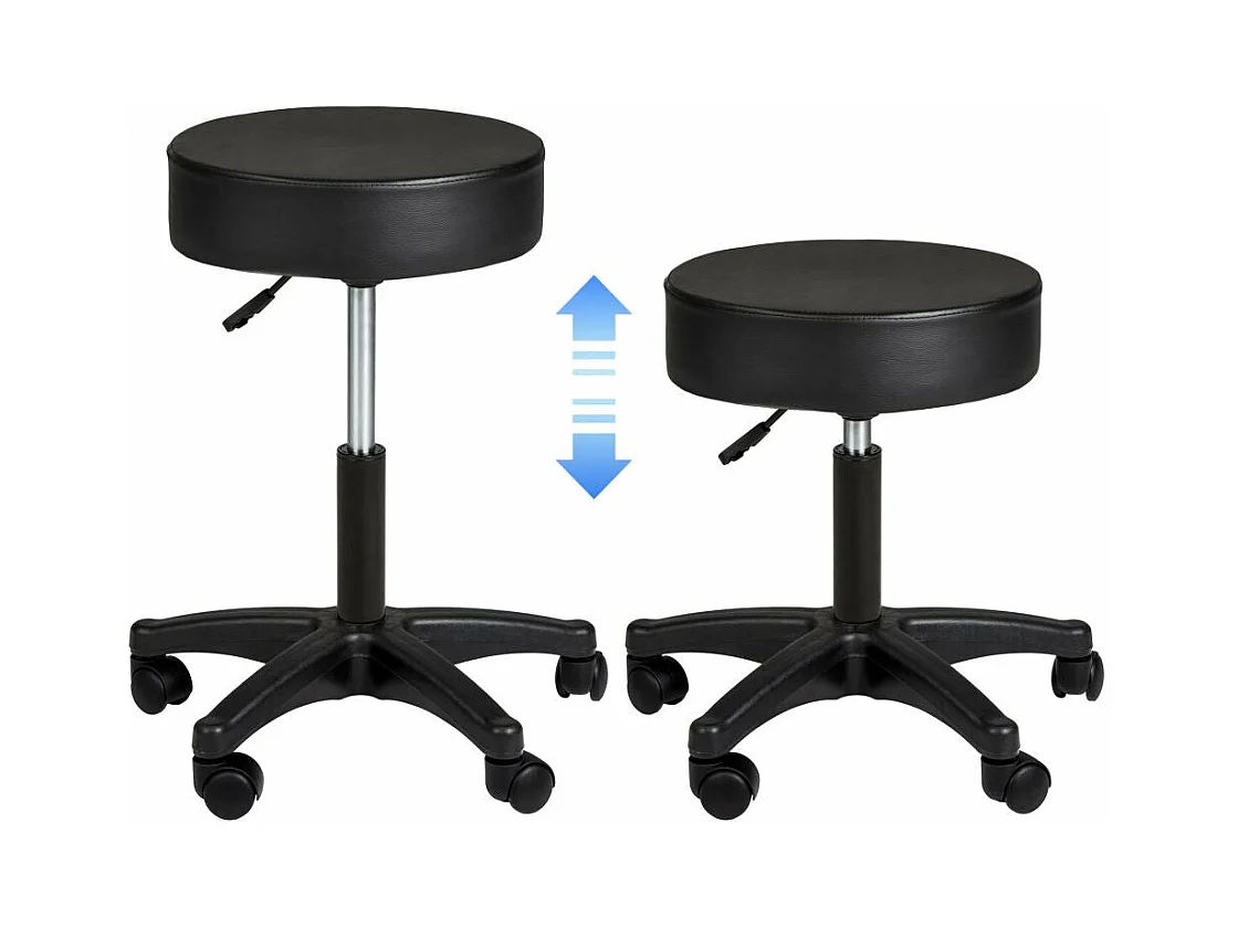 Lotto 2 tabourets roulant réglables cuir synthétique pivotants pour salon Ø35,5 cm noir