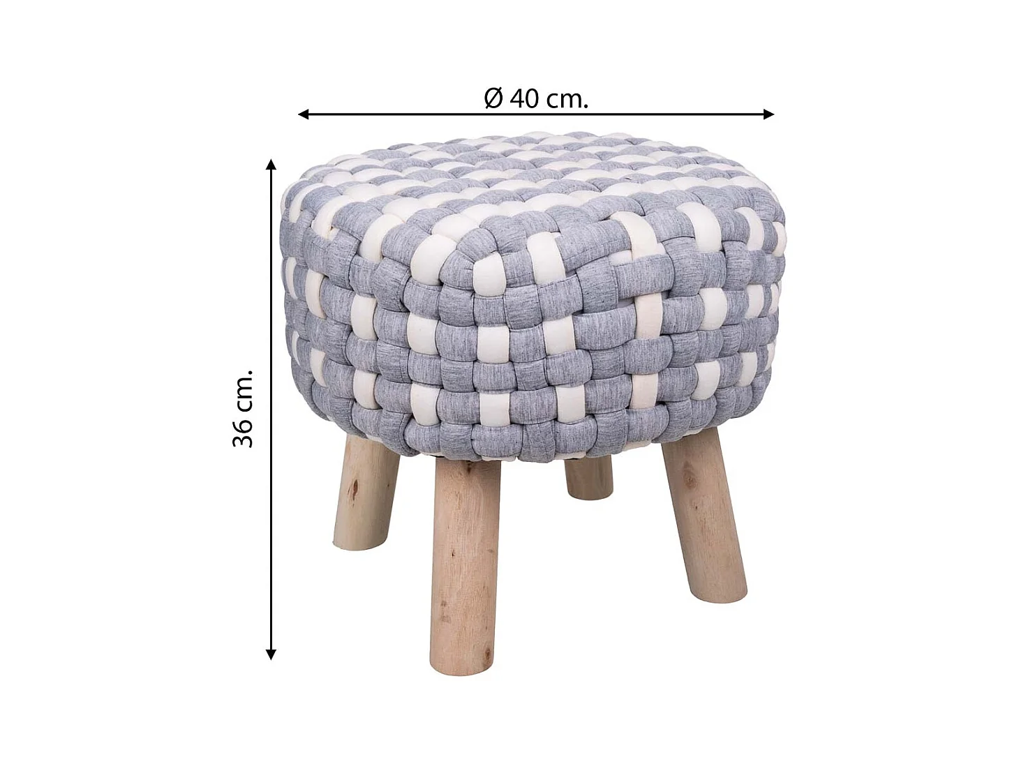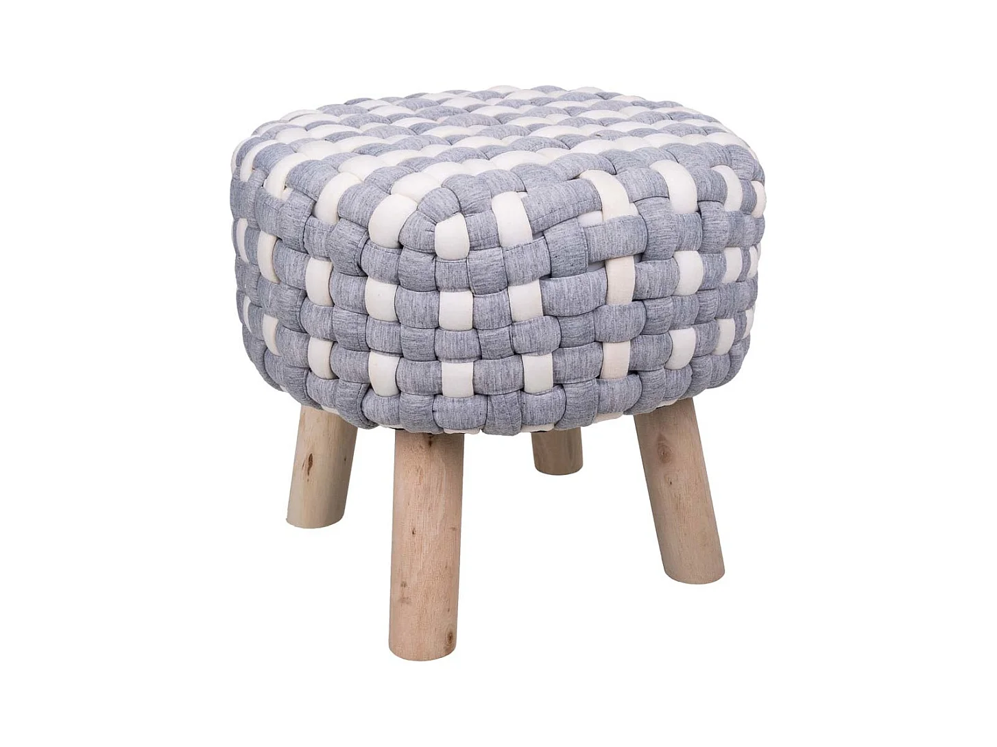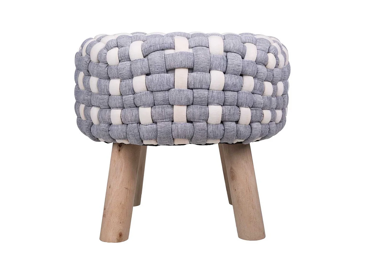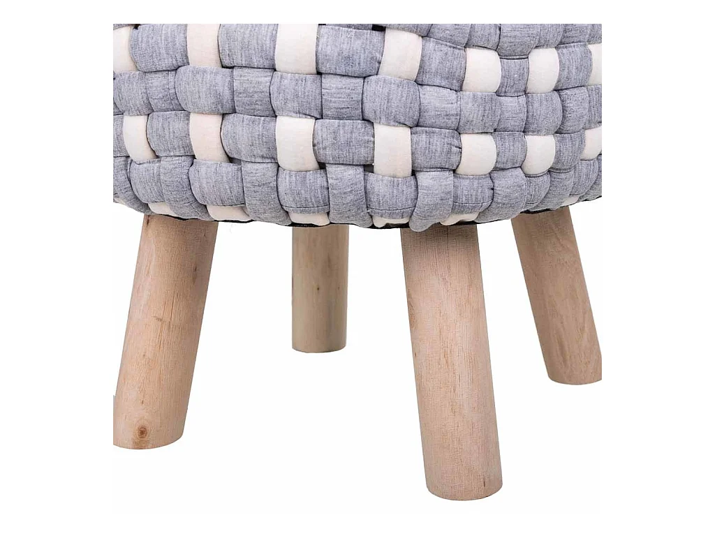 Sgabello grigio in cotone intrecciato e legno 40x40x36h