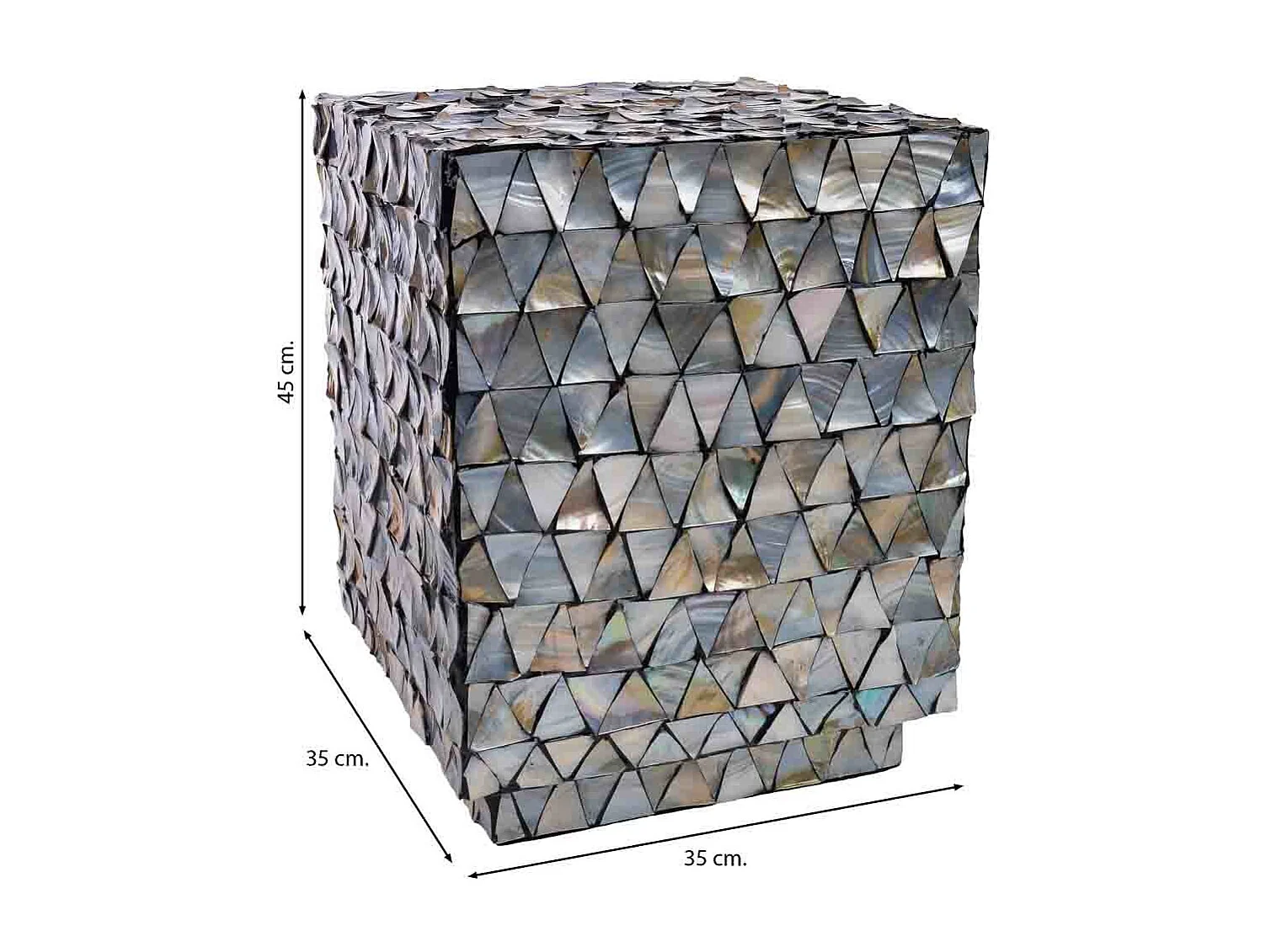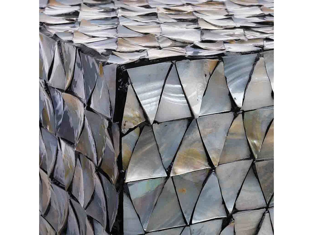Sgabello in legno e madreperla grigia 35x35x45h cm