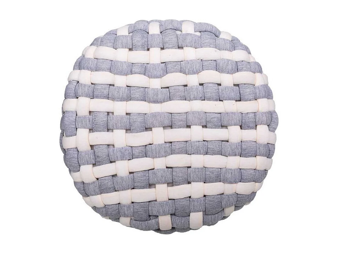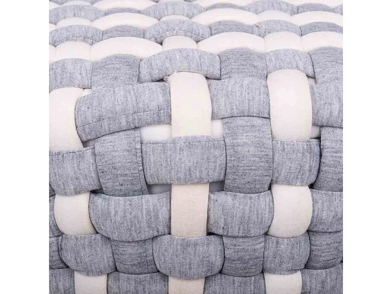 Sgabello grigio in cotone intrecciato e legno 40x40x36h
