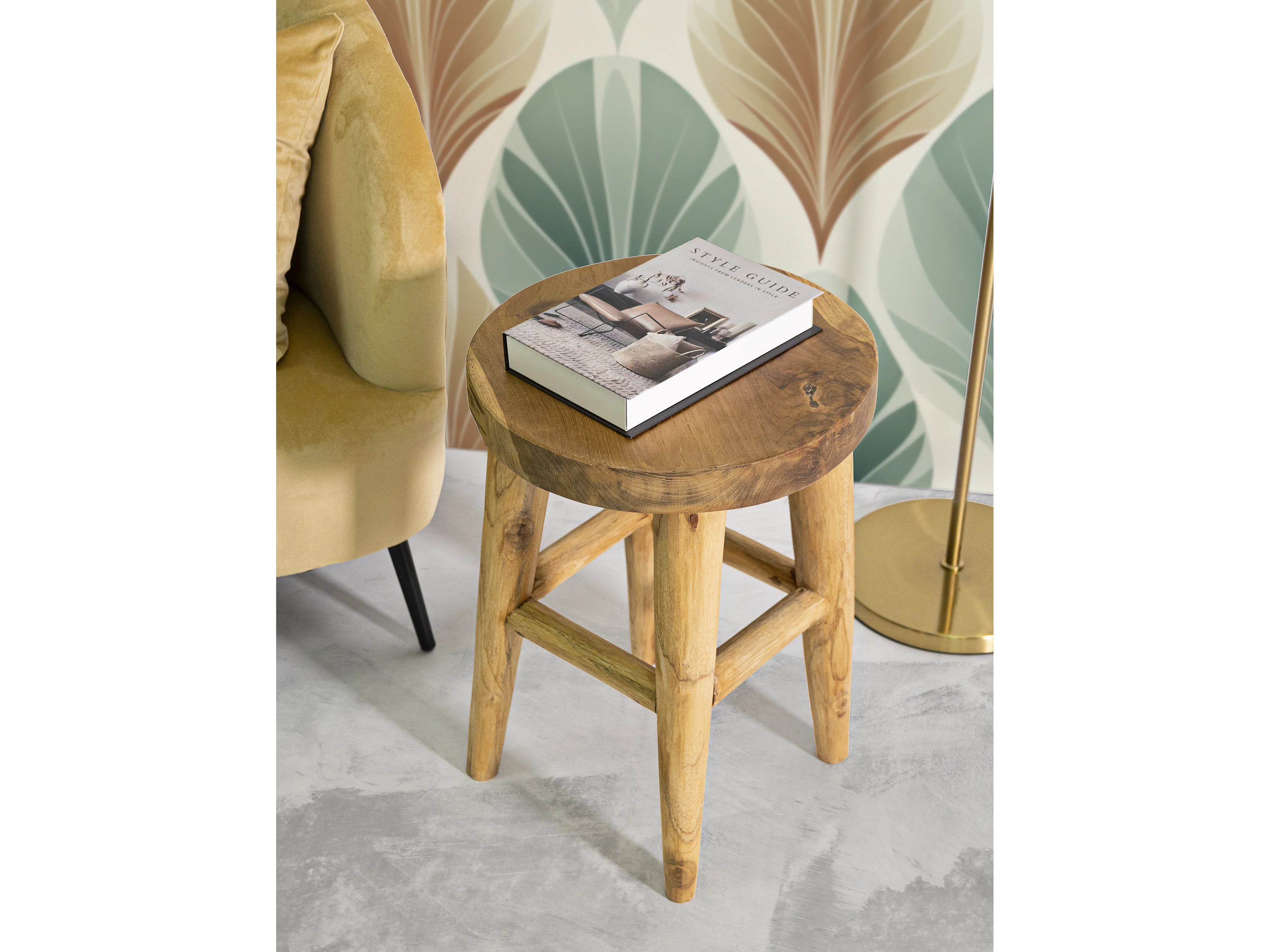 Sgabello rivestito in pelle naturale e gambe in legno di mango