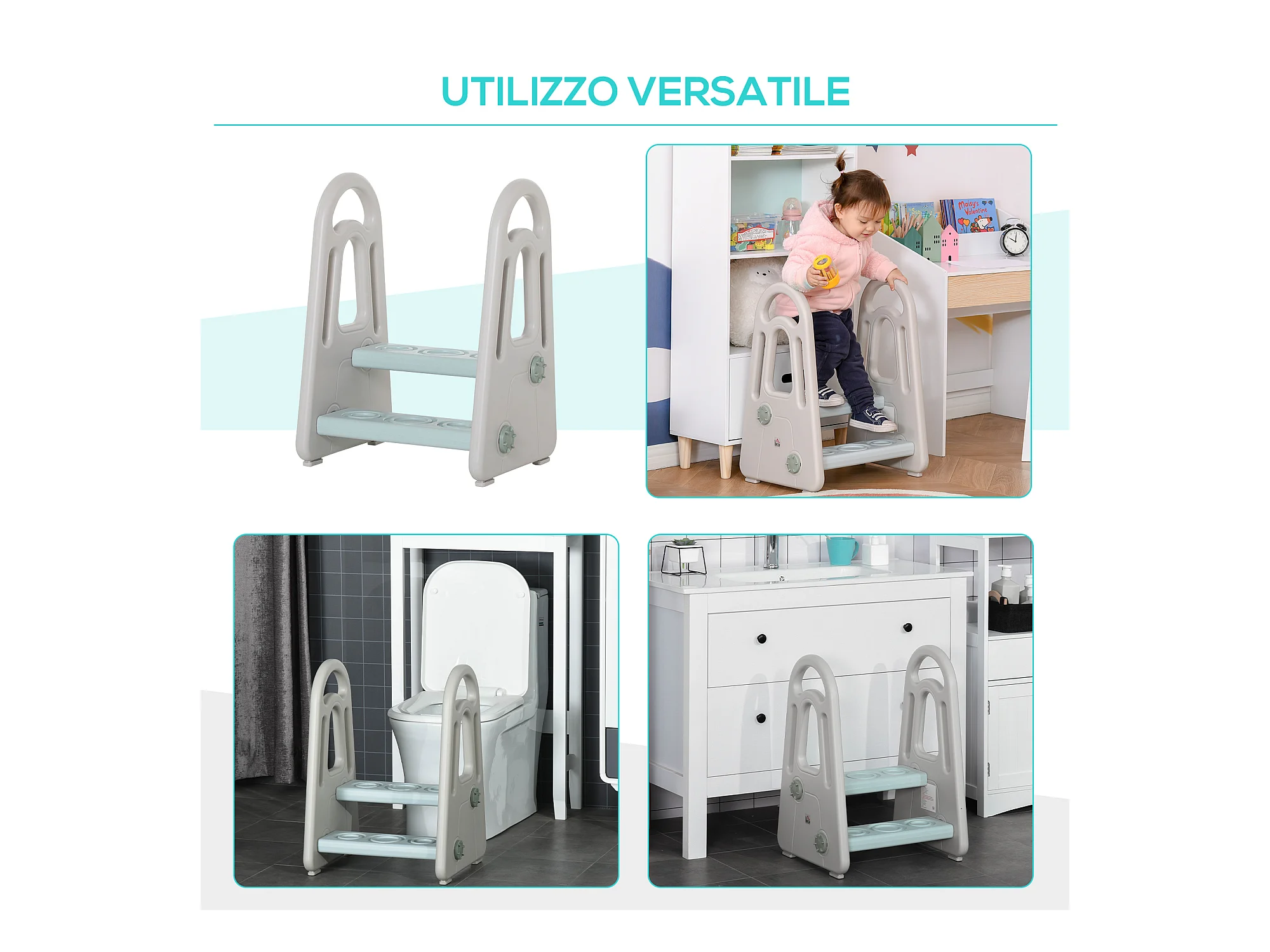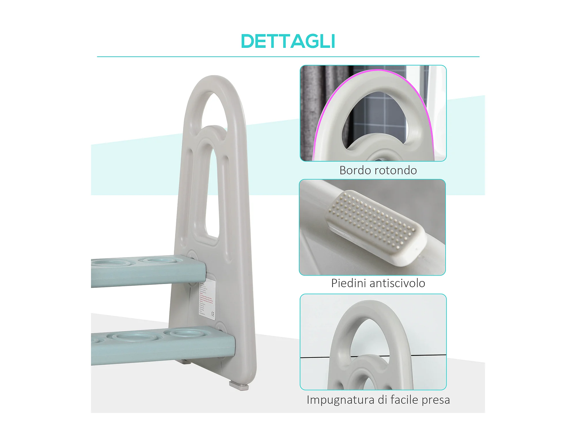Sgabello per bambini 2-5 anni scaletta a 2 gradini blu e grigio