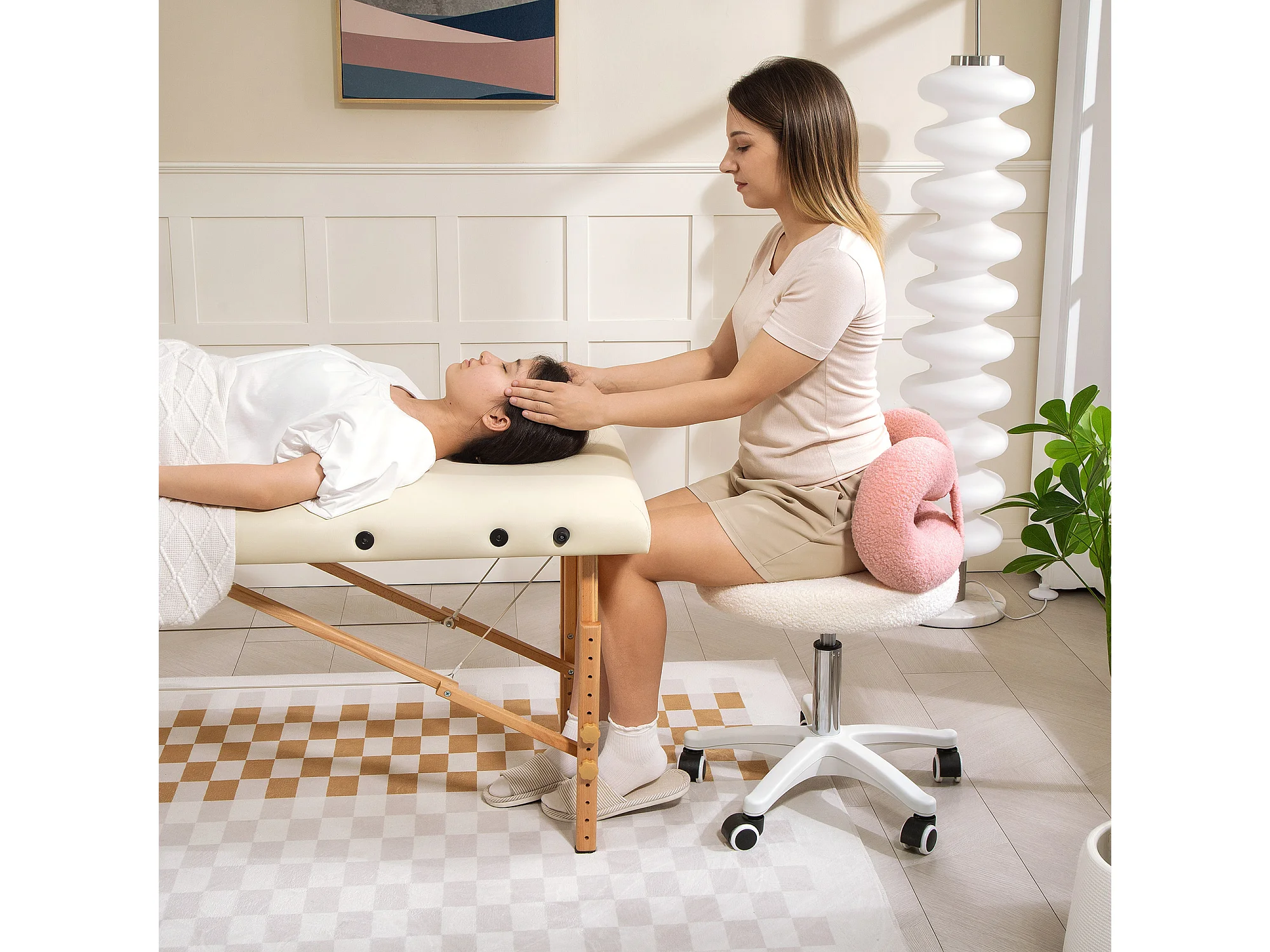 Sgabello per parrucchiere ad altezza regolabile con rotelle girevoli e schienale ad arco