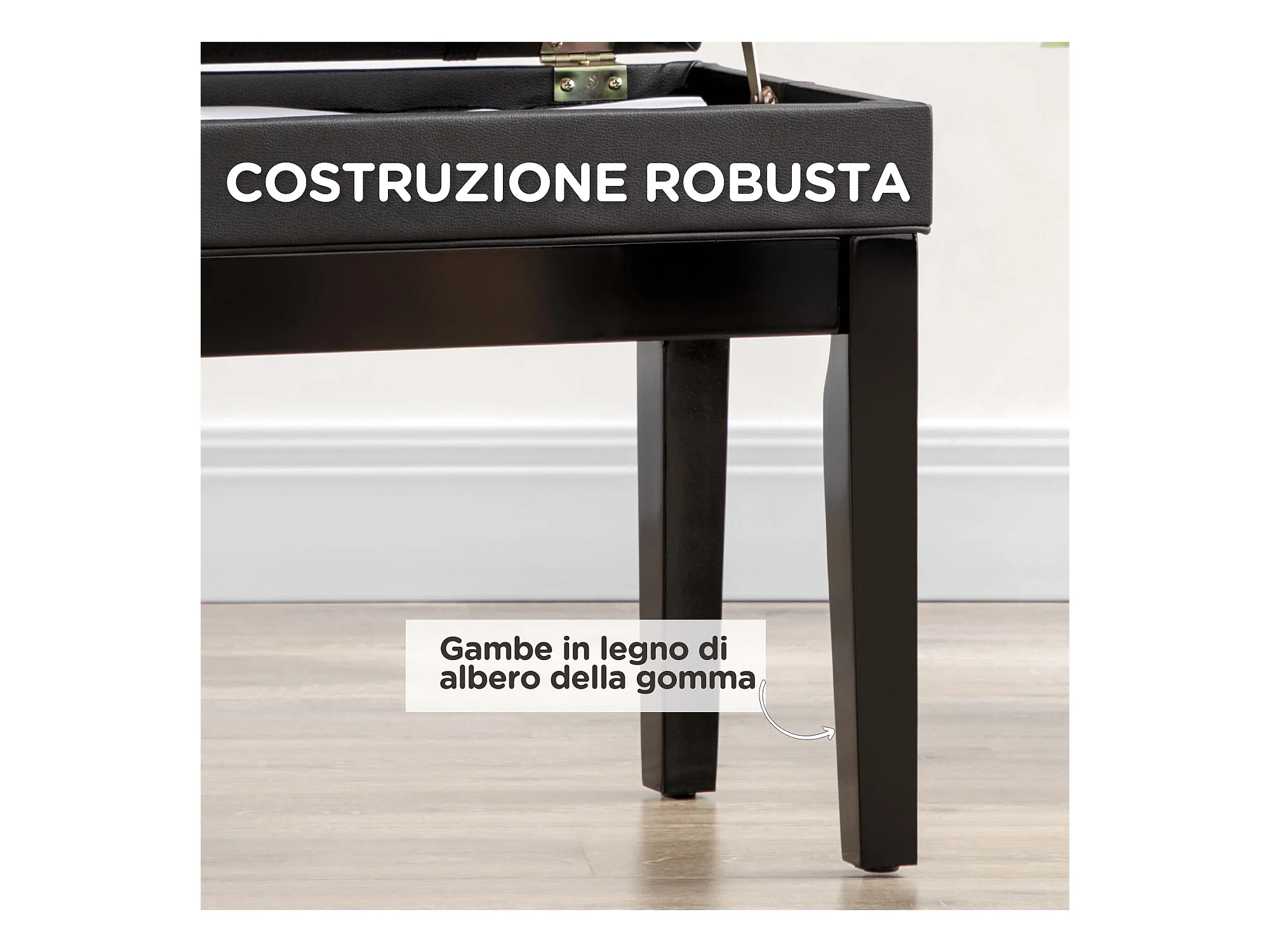 Sgabello per pianoforte con vano contenitore in legno e pelle pu nero