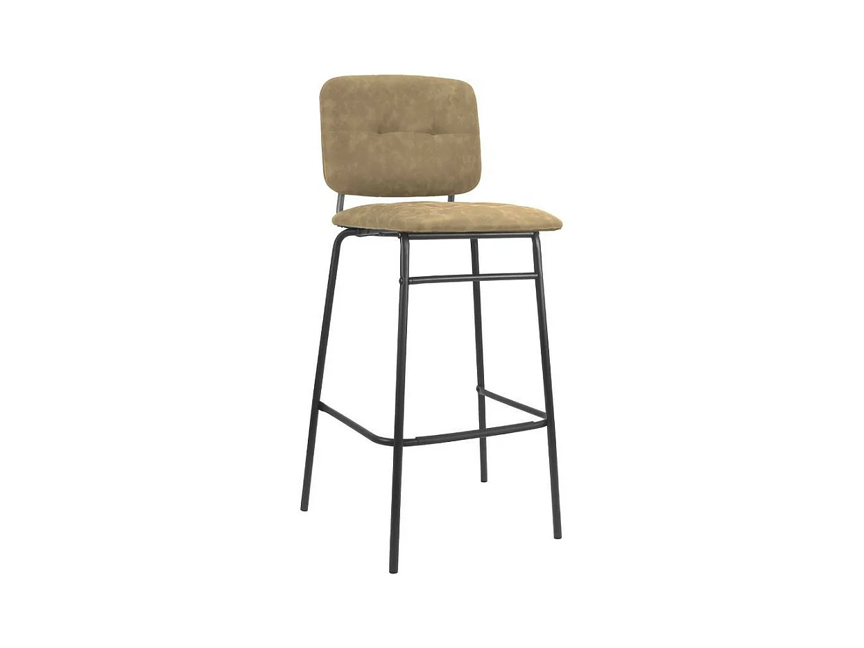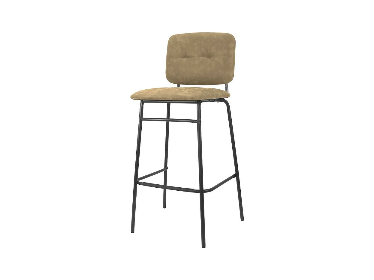 Sgabello con gambe in metallo nero e schienale avvolgente beige Core