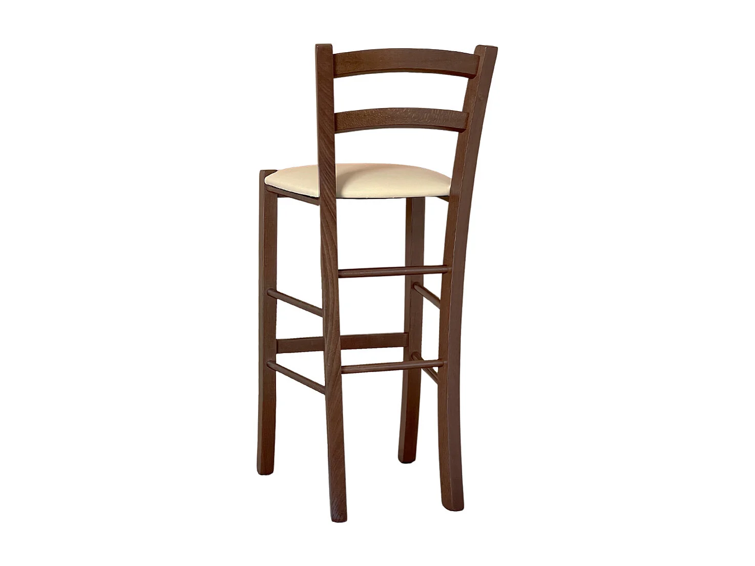 Sgabello venezia in legno noce scuro h 73 con seduta imbottita beige/crema
