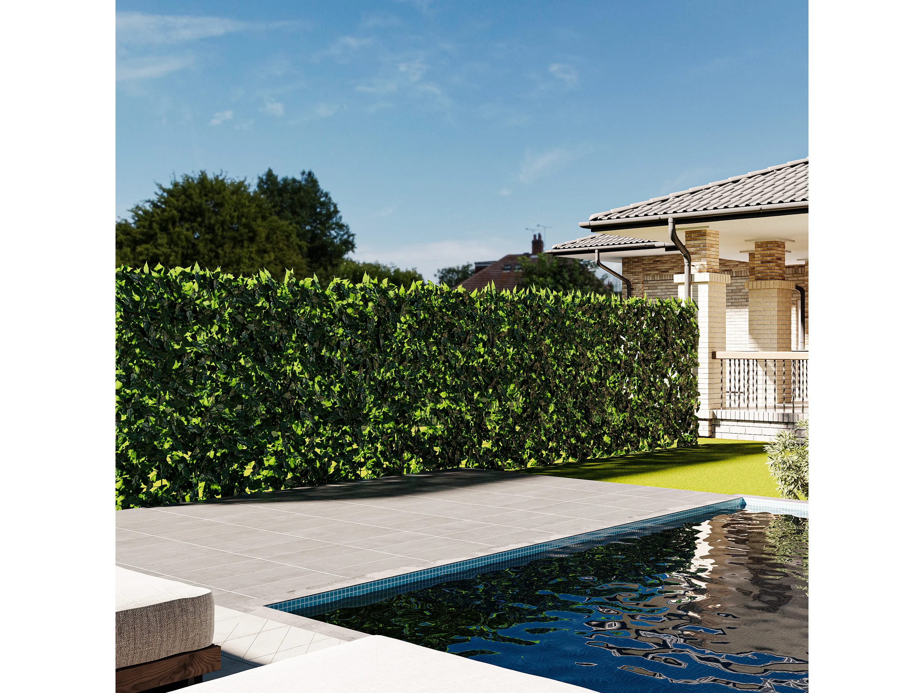 Siepe Finta Artificiale Ultra Coprente Anticaduta Rotolo Rete Frangivista Frangivento Ornamentale Foglia Edera Sintetica Per Ringhiera 1x12 mt
