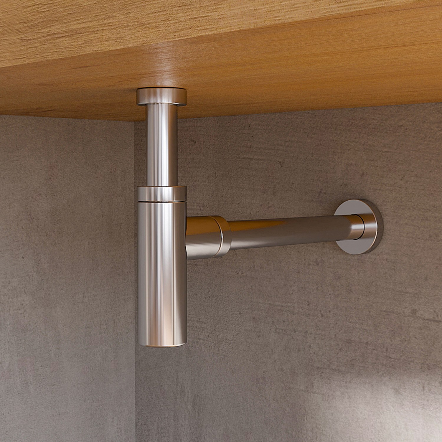 Sifone Di Scarico Tondo Universale In Ottone Cromato Scarico Lavabo 1"1\/4 G Altezza 12,5 Cm Bagno Elegante E Resistente Contro Cattivi Odori