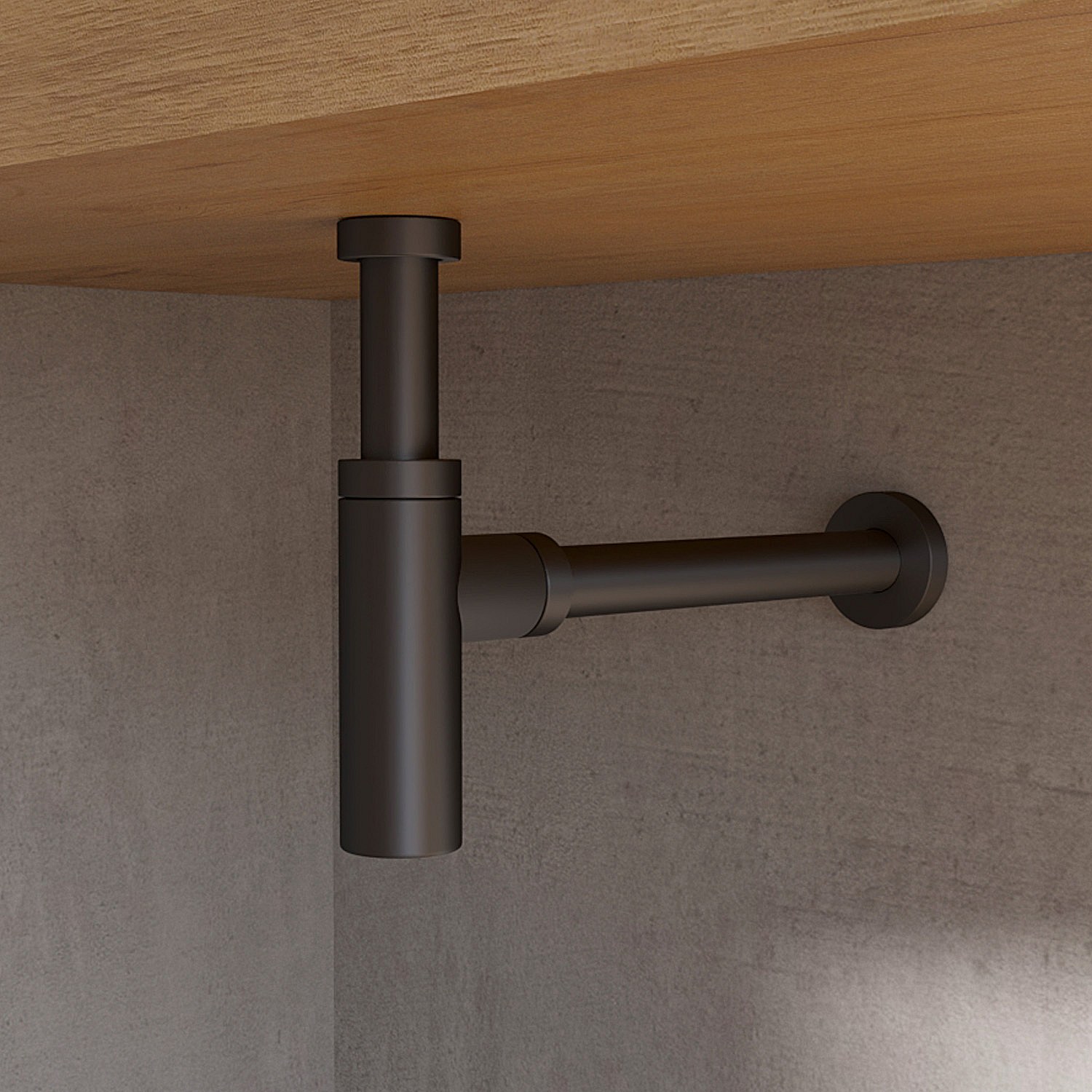 Sifone Di Scarico Tondo Universale In Ottone Nero Opaco Scarico Lavabo 1"1\/4 G Altezza 12,5 Cm Bagno Elegante E Resistente Contro Cattivi Odori