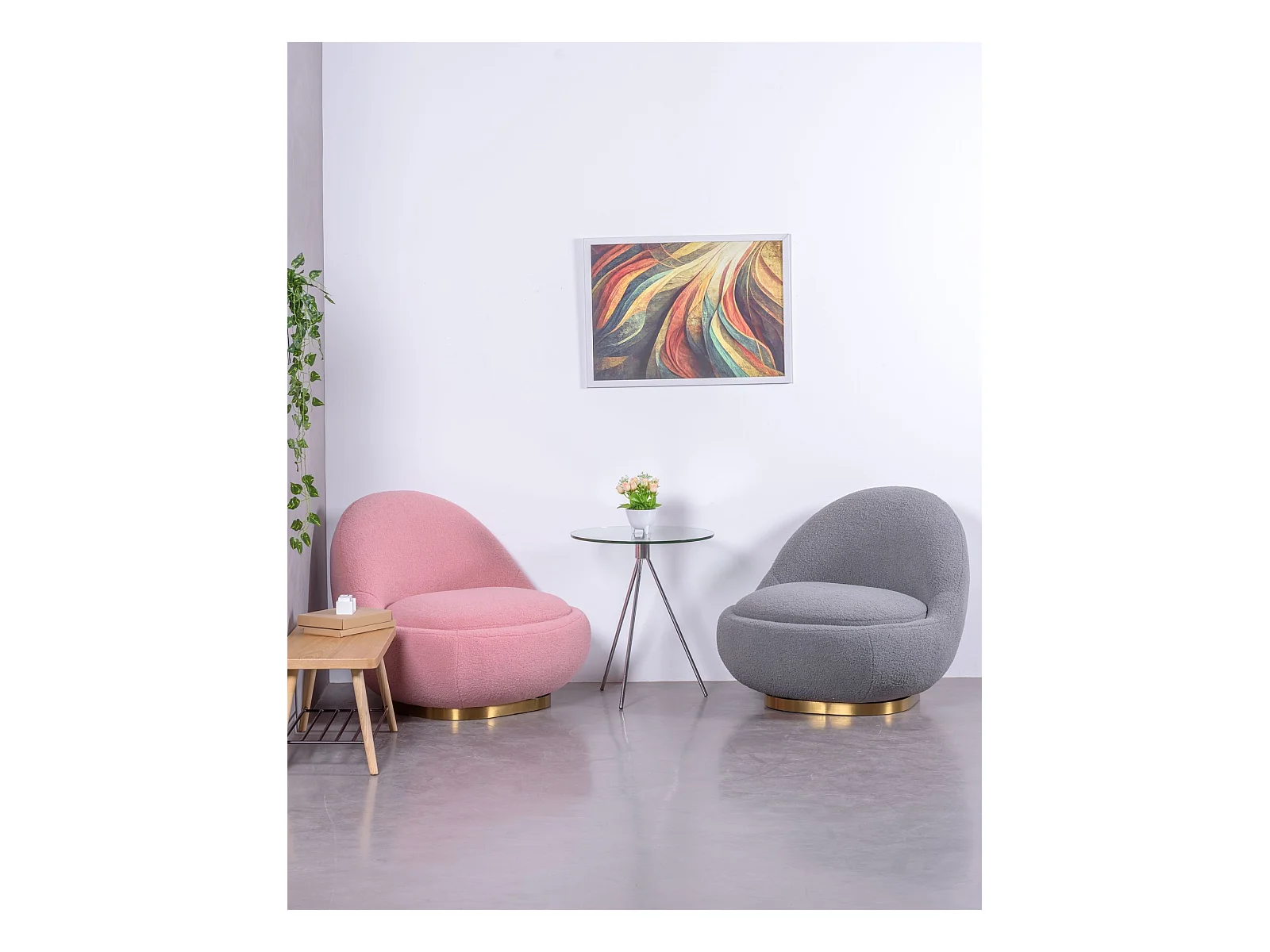 Poltrona sedia lounge MCW-J77 metallo tessuto bouclè grigio scuro