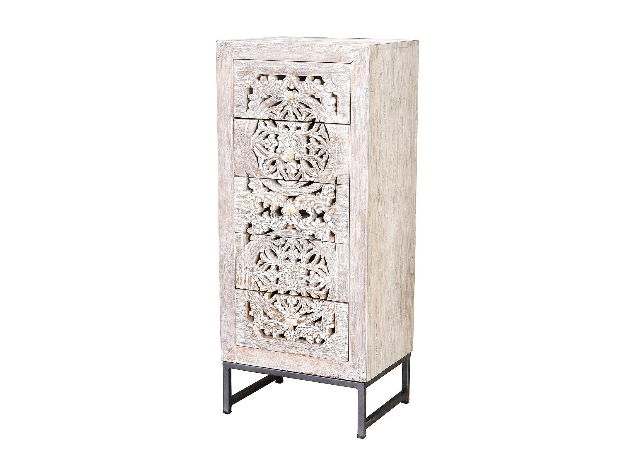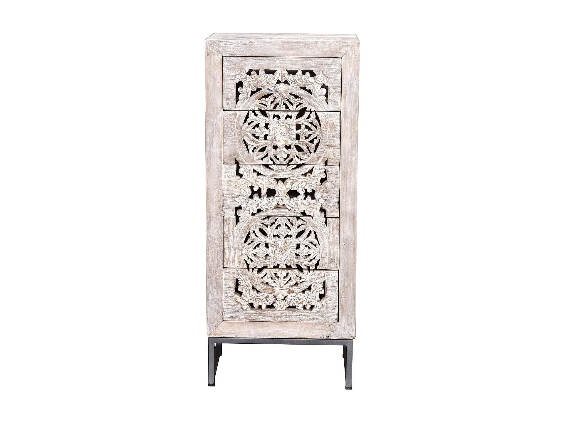 Sinfonier a 5 cassetti in massello di mango intagliato