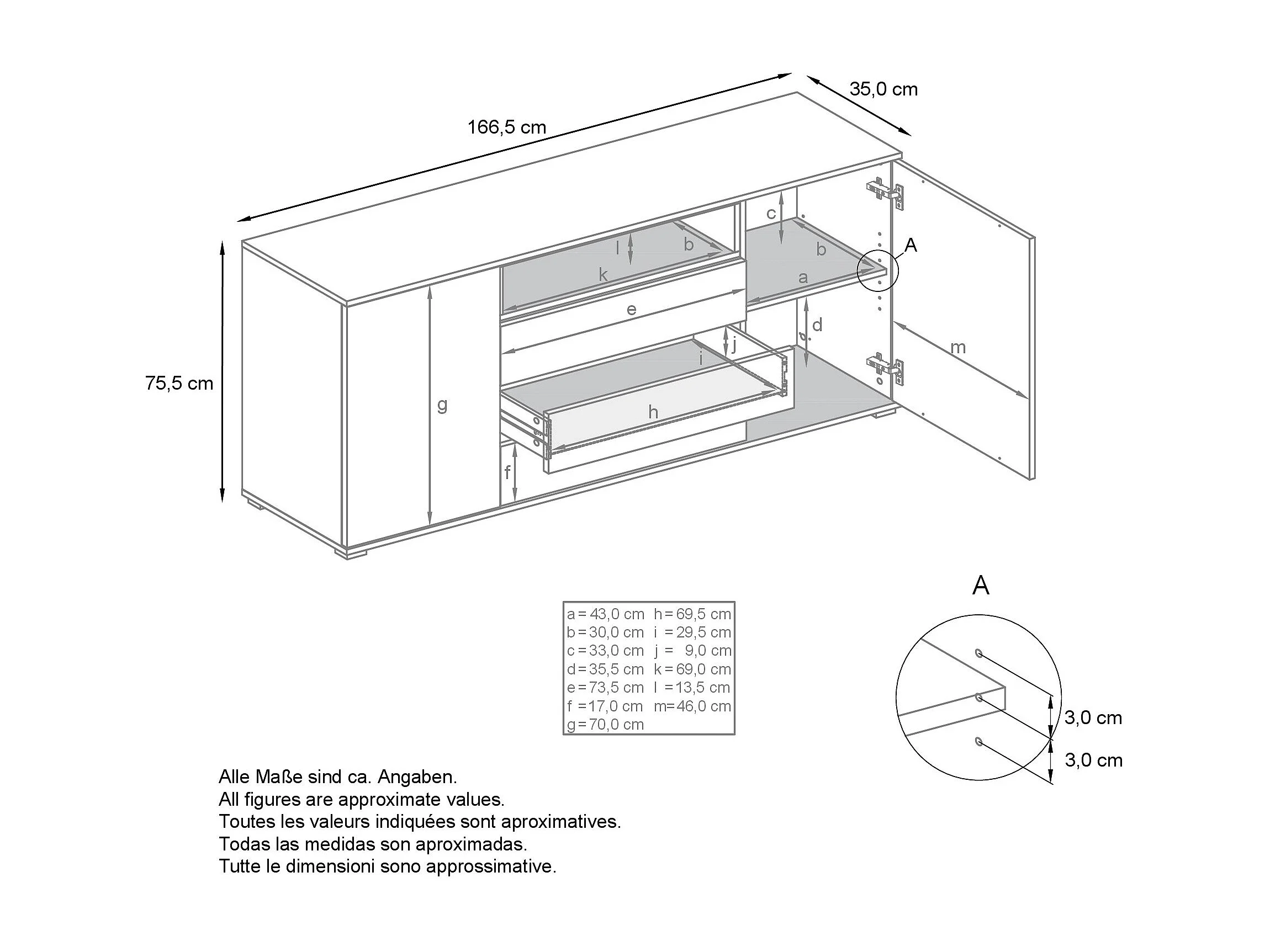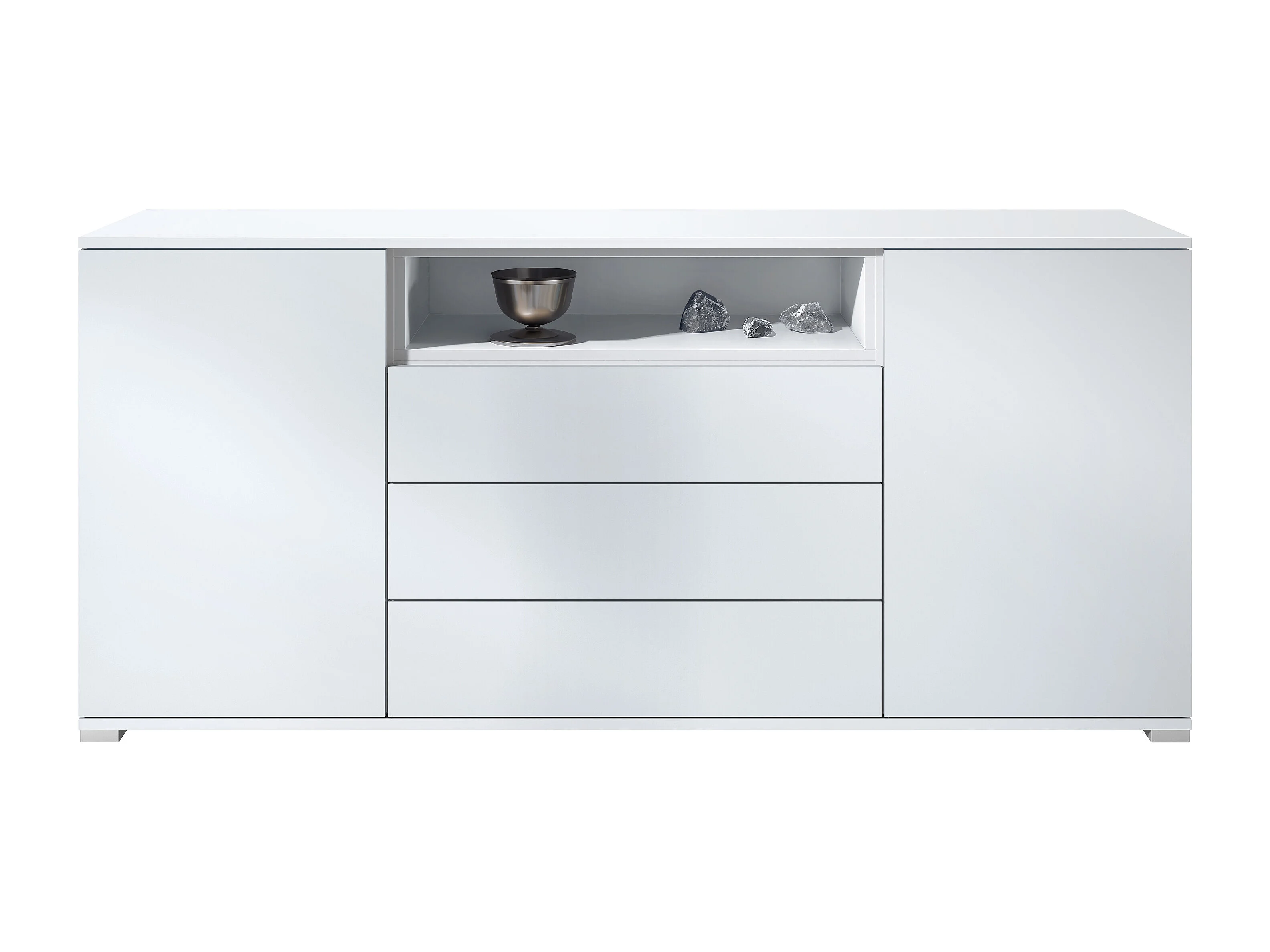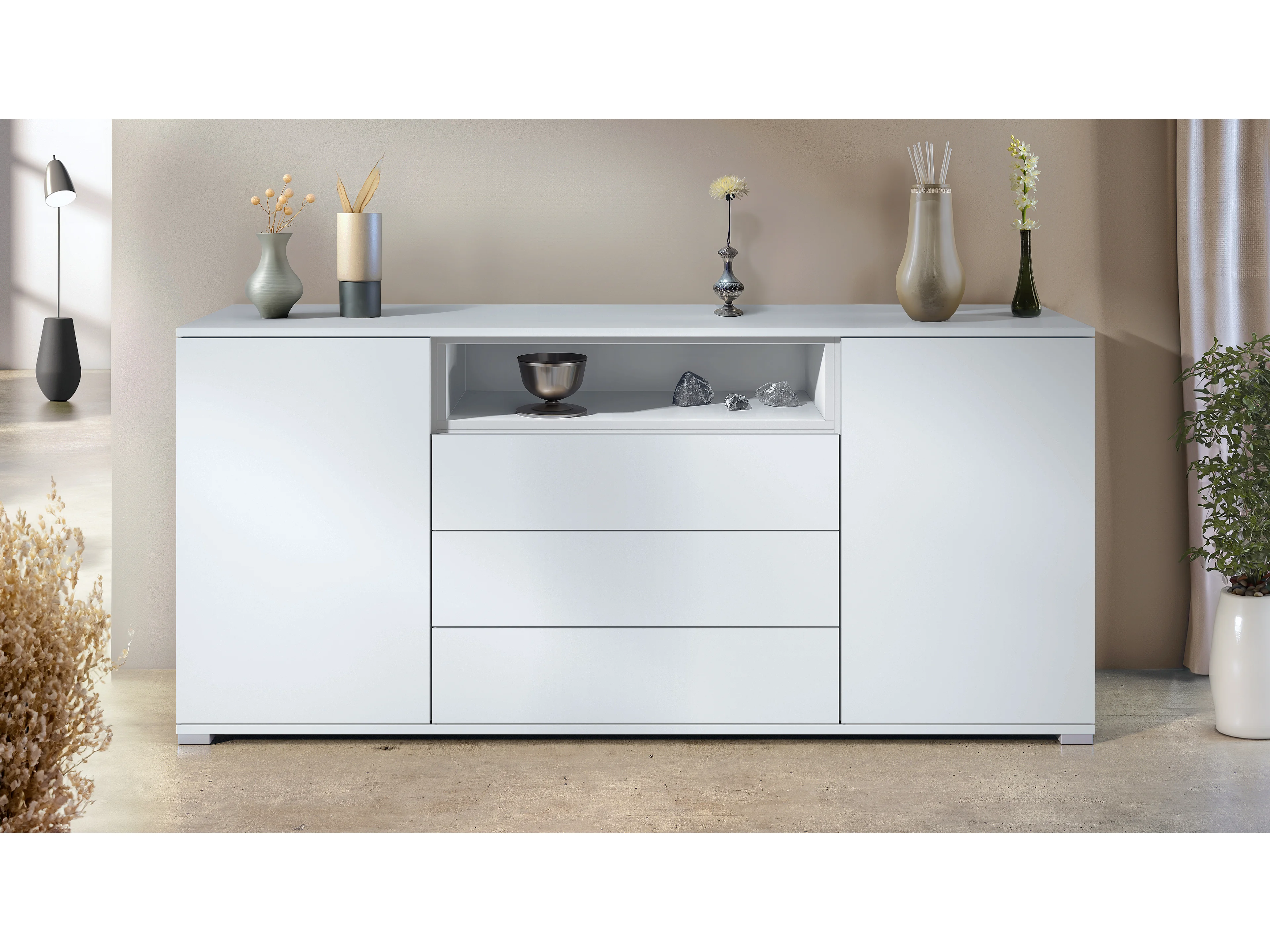 Skadu V4 Credenza, mobile con 2 ante, 3 cassetti e 1 scomparto a giorno, bianco opaco/bianco opaco (166,5 x 75,5 x 35 cm)