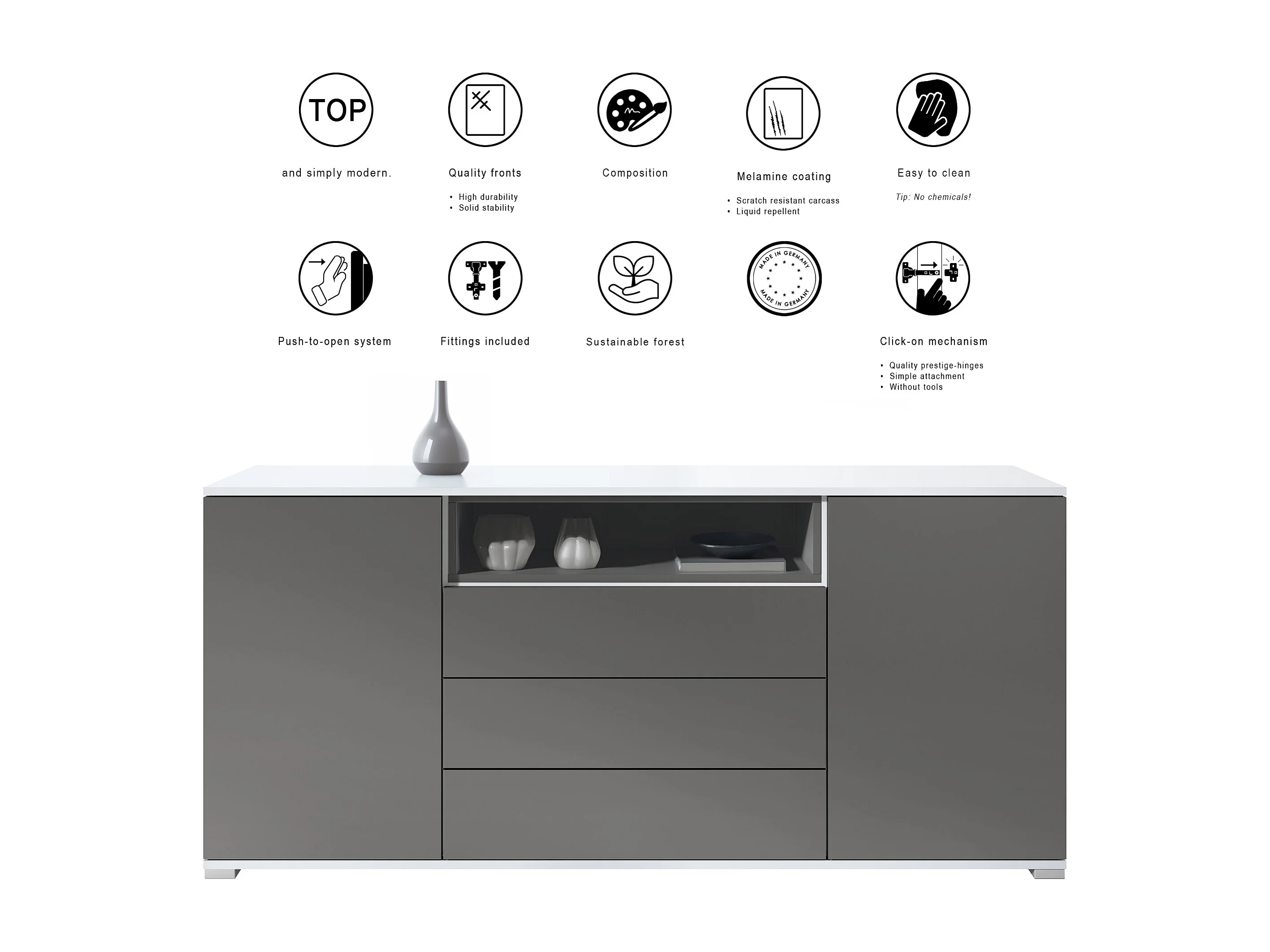 Skadu V4 Credenza, mobile con 2 ante, 3 cassetti e 1 scomparto a giorno, antracite opaco /bianco lucido (166,5 x 75,5 x 35 cm)