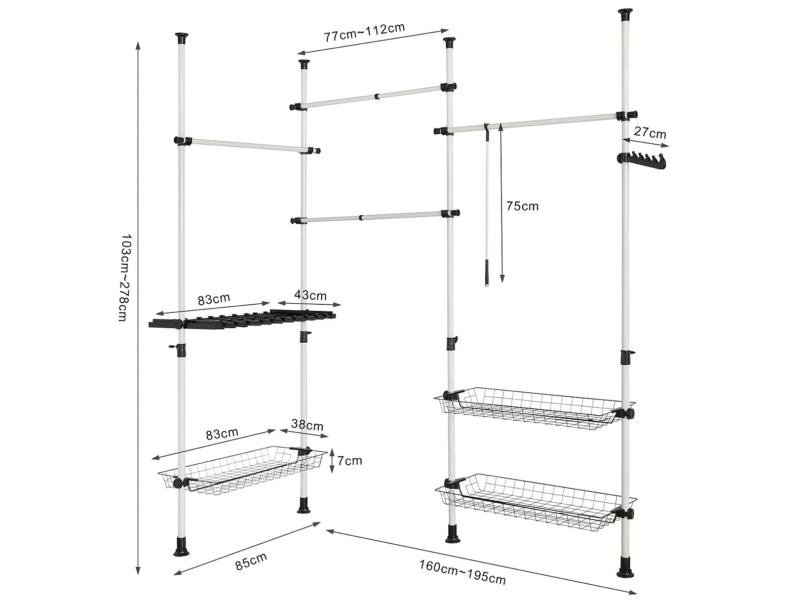SoBuy Appendiabiti telescopico, Scaffale telescopico, set telescopico,Altezza regolabile,FRG38