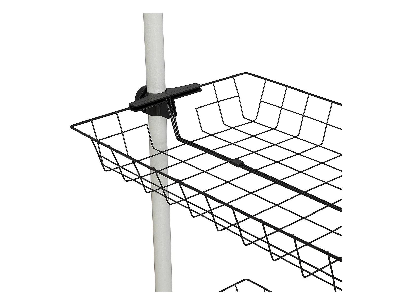 Appendiabiti portatile nero con organizer portaoggetti, MDF, asta in legno massello (44x36,5x110 cm)