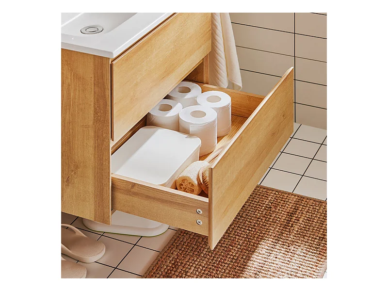 SoBuy Mobili da bagno sospeso Mobile lavabo con 1 cassetto Bianco-Naturale 61x46x59 cm BZR171-N