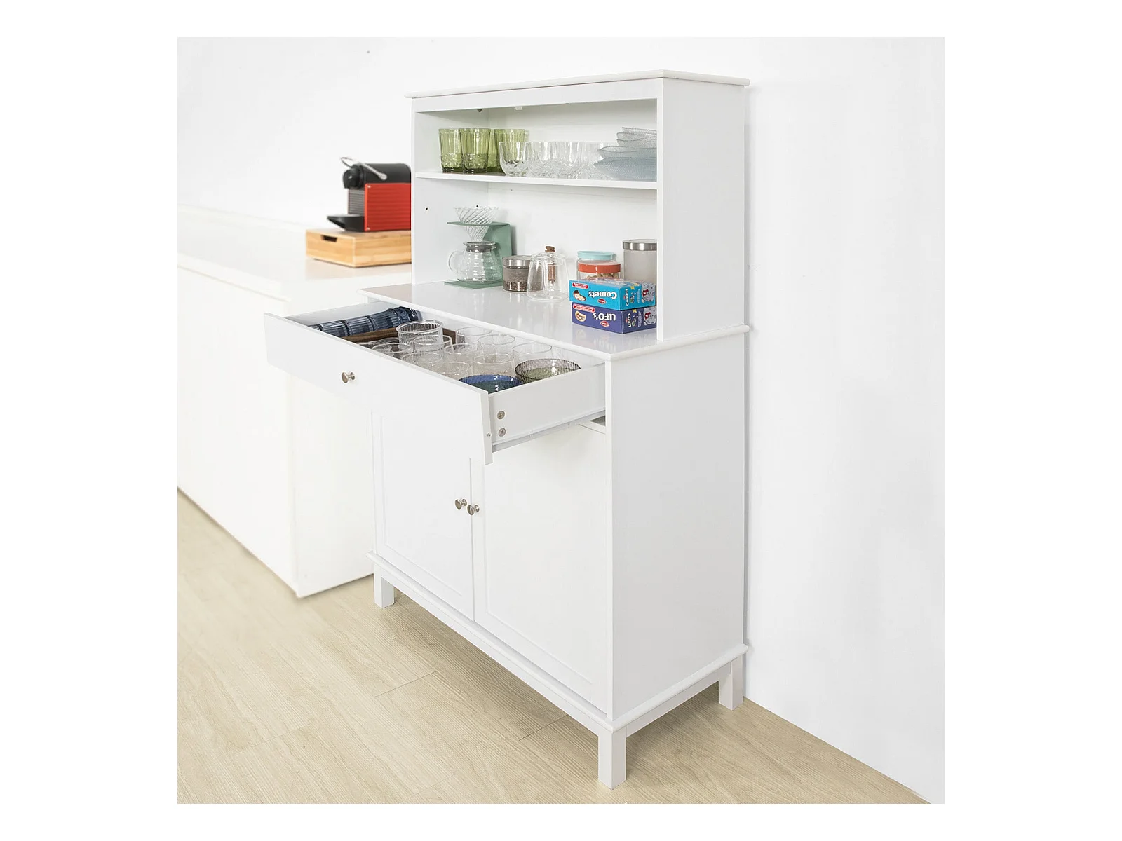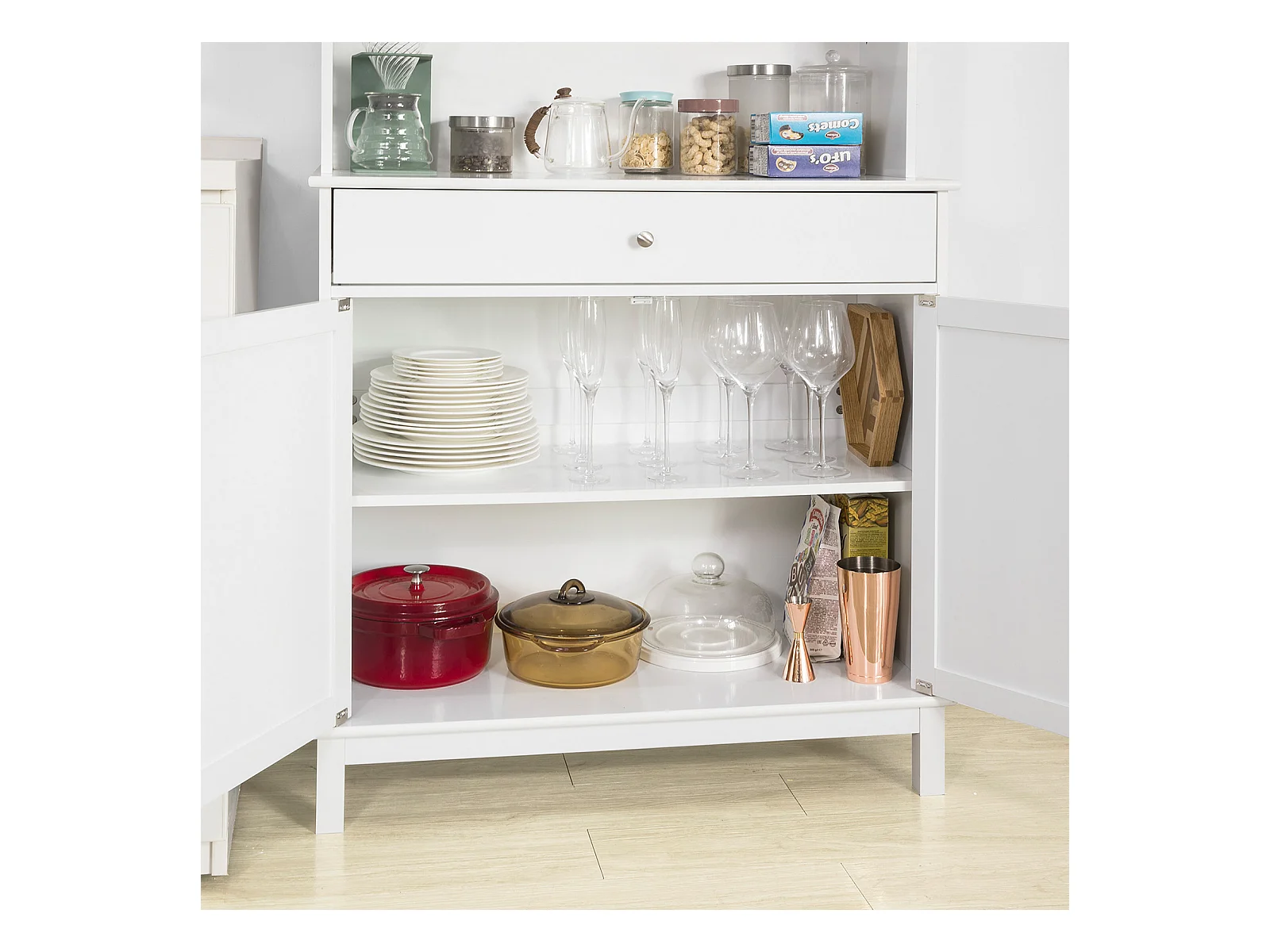SoBuy Mobile Cucina salvaspazio Credenza con vetrina Bianco L90*P40*A148 cm, FSB26-W