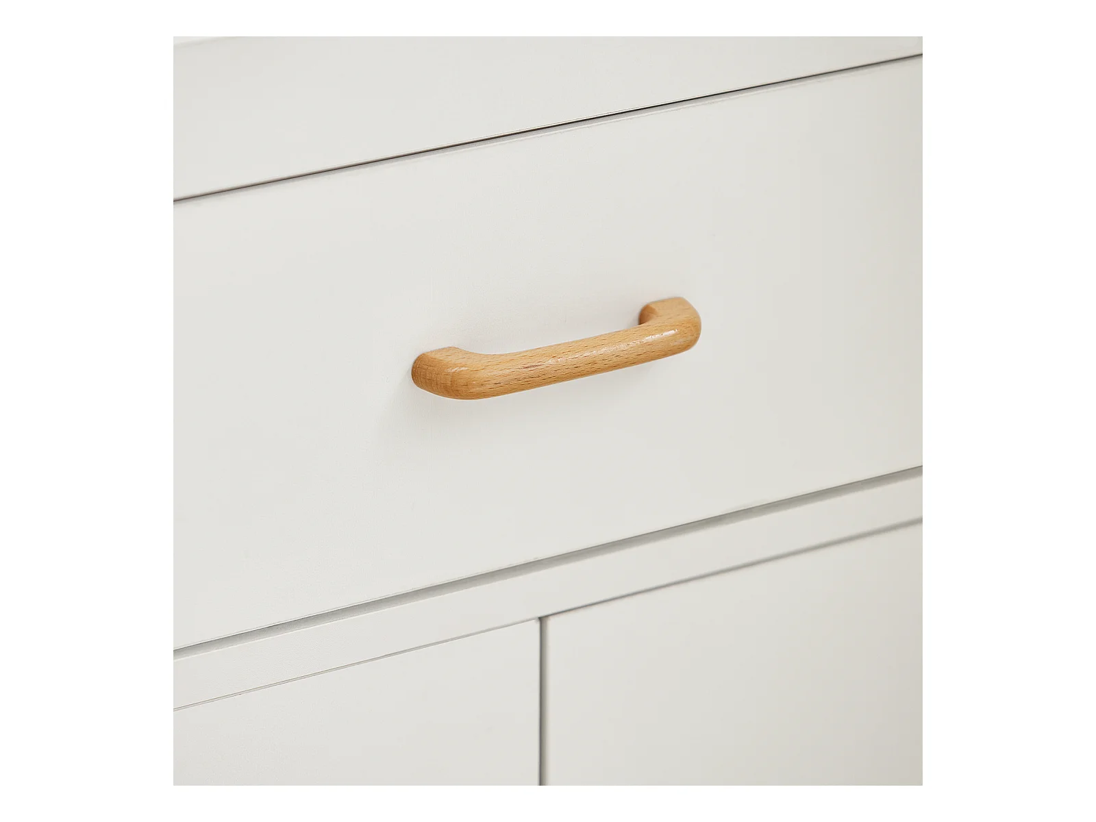 Carrello da cucina con ante a righe, spazio di stoccaggio, MDF, bianco (128x40x92,5 cm)