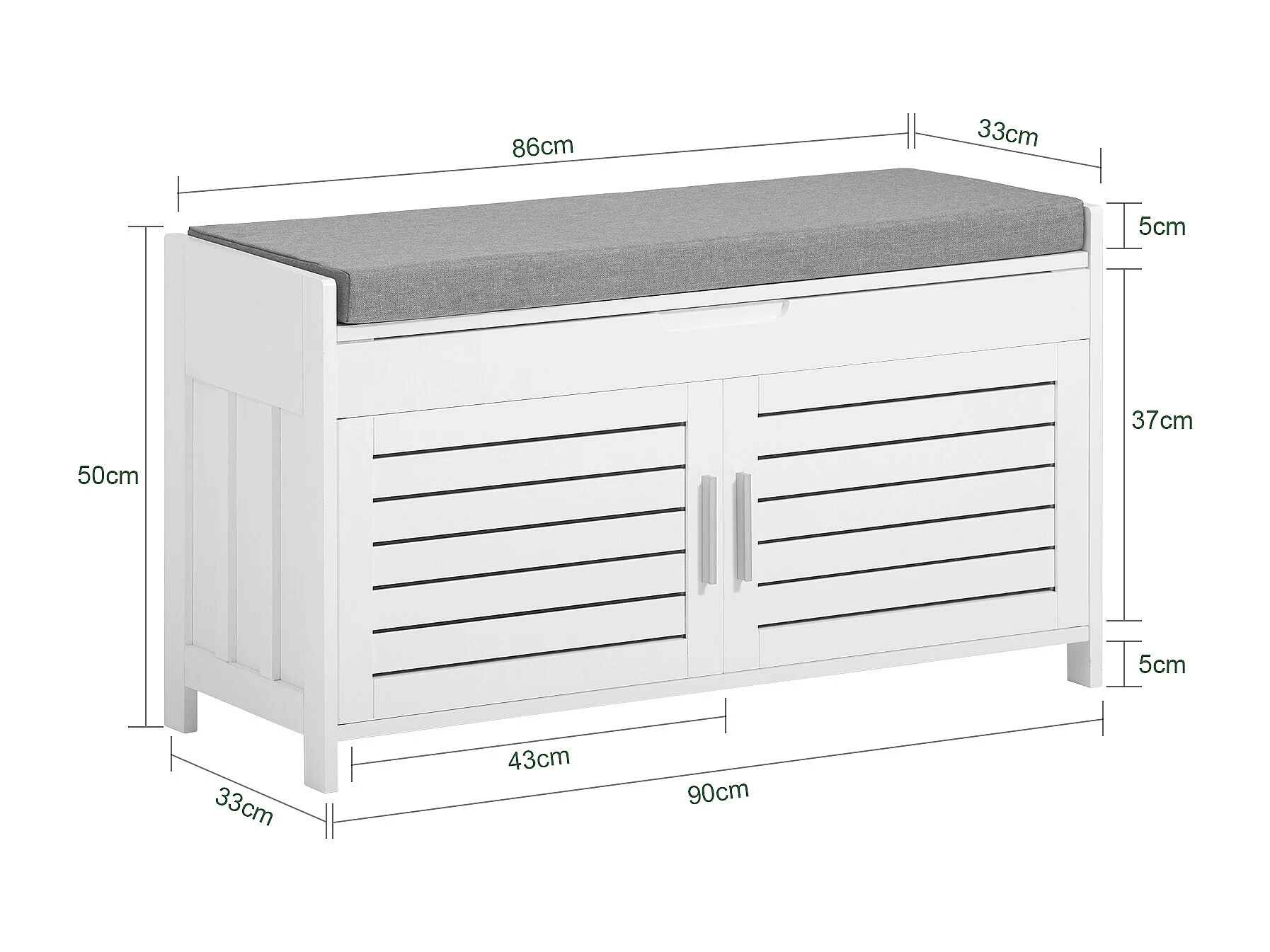 SoBuy Panca contenitore con 2 ante Scarpiera con vano portaoggetti Panca ingresso Bianco, L90xP33xA50 cm FSR102-W