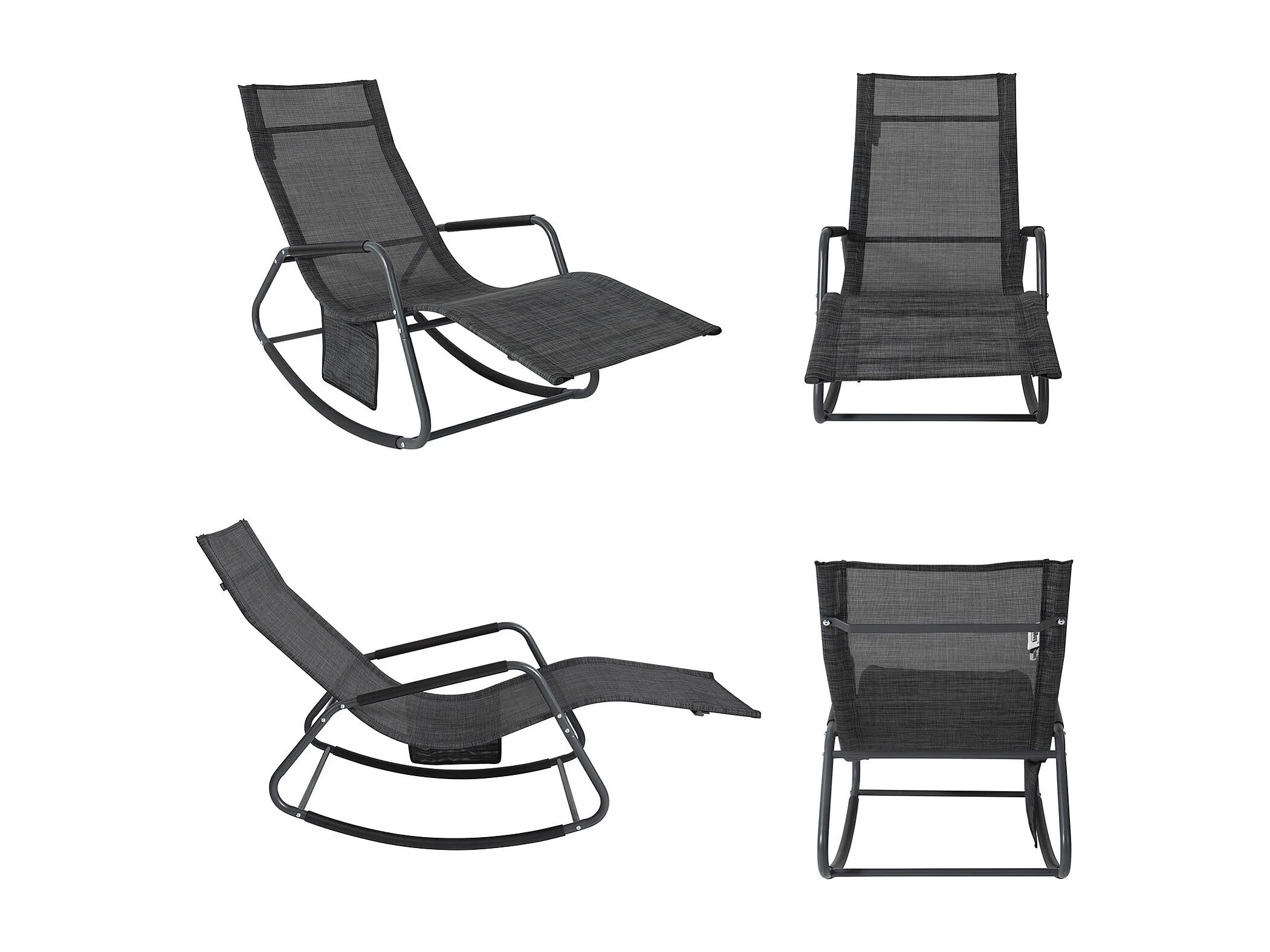 SoBuy Poltrona a Dondolo da Giardino Sedia a Dondolo Esterno con Tasca Laterale Portata Fino a 150 kg Grigio Scuro OGS47-MS