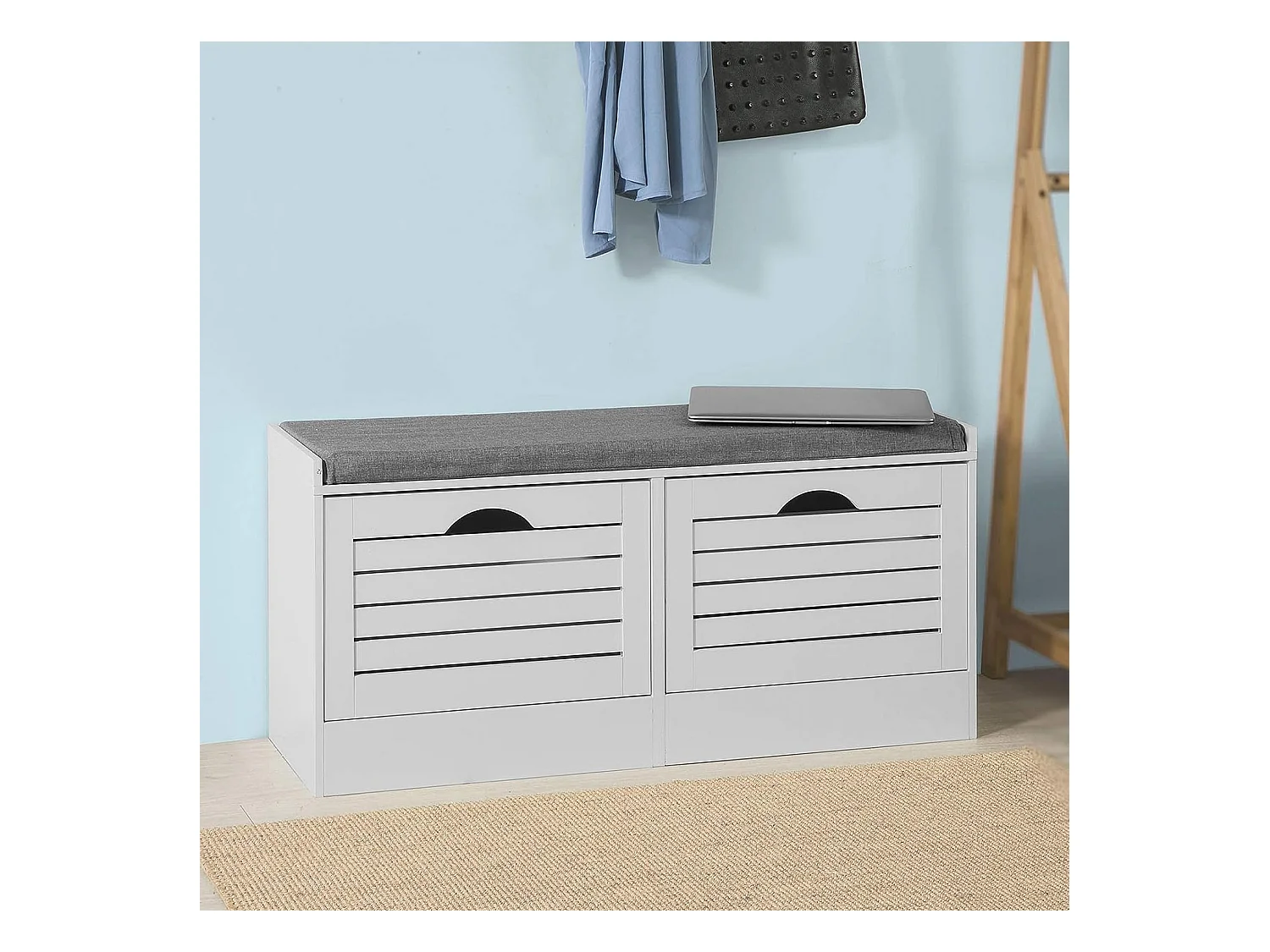 SoBuy Scarpiera Cassapanca Panca Contenitore camere da Letto Seduta con Cuscino 2 cassetti Panca Ingresso L72*P30*A46cm FSR88-W
