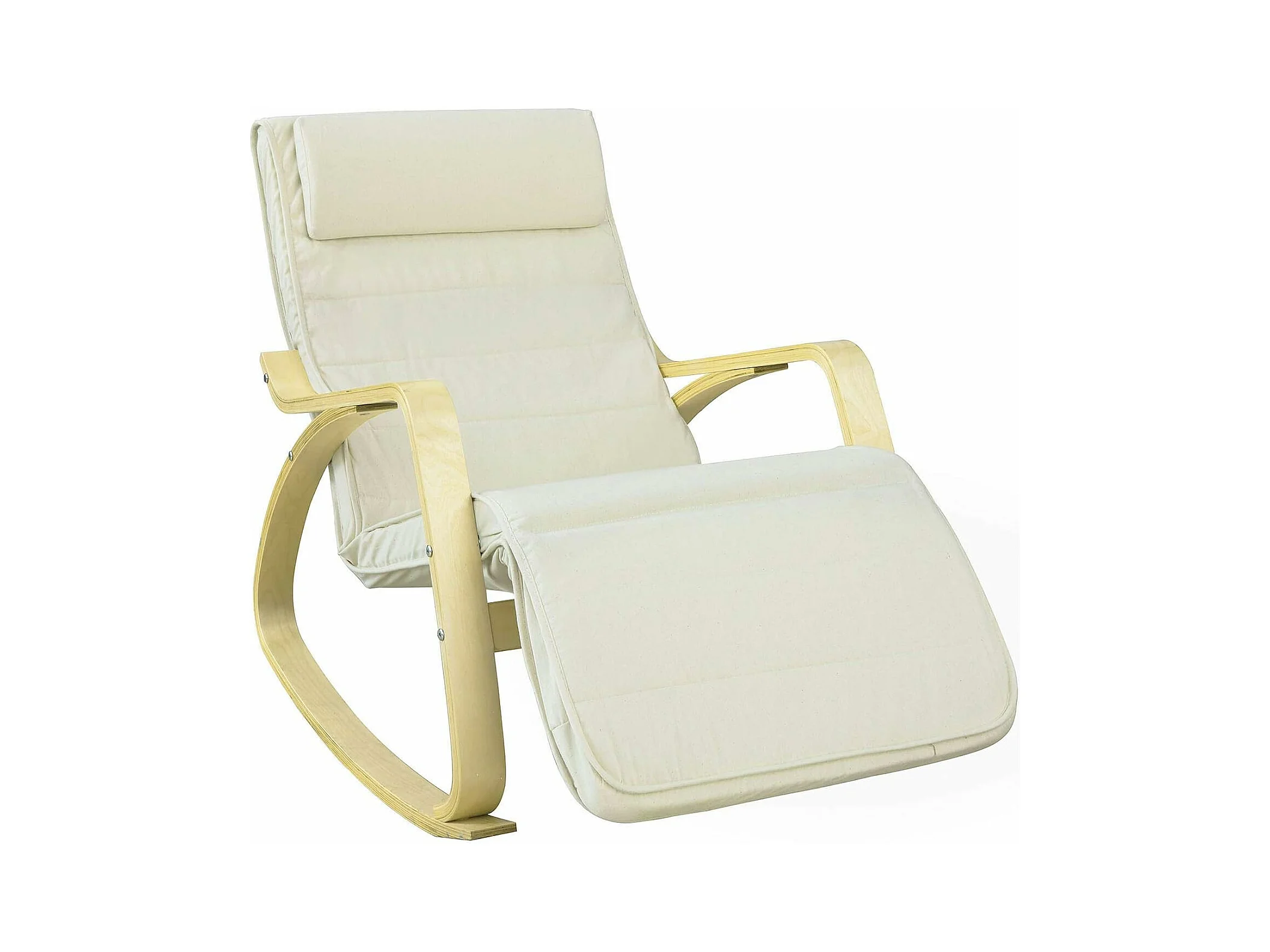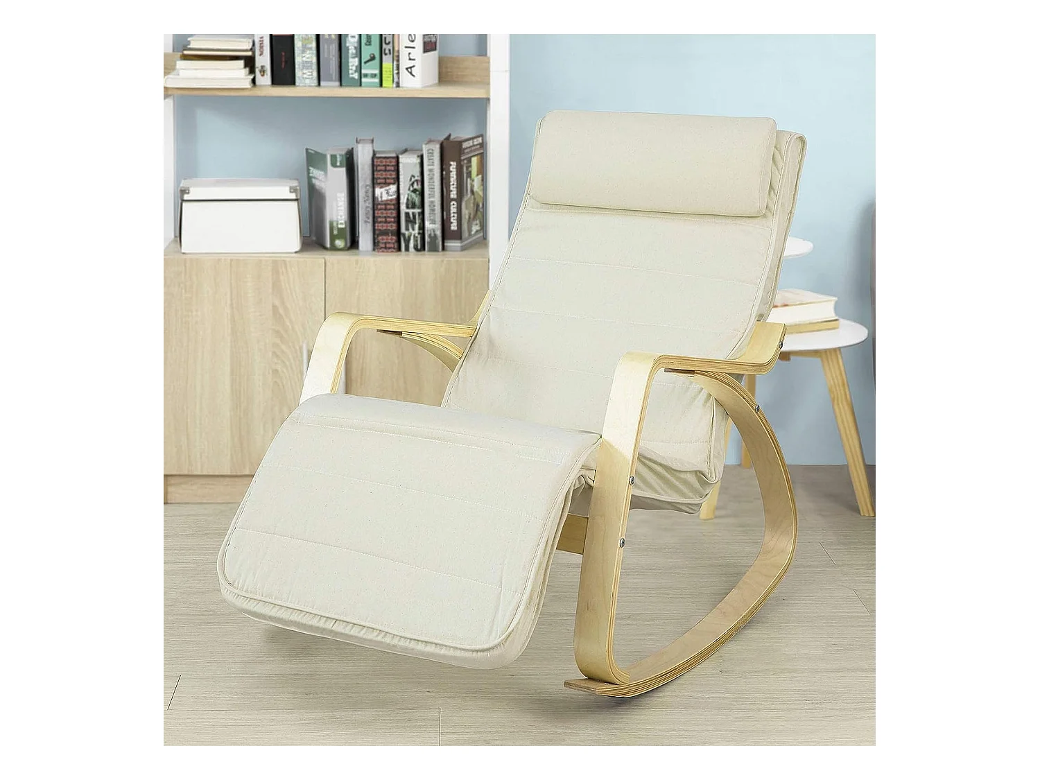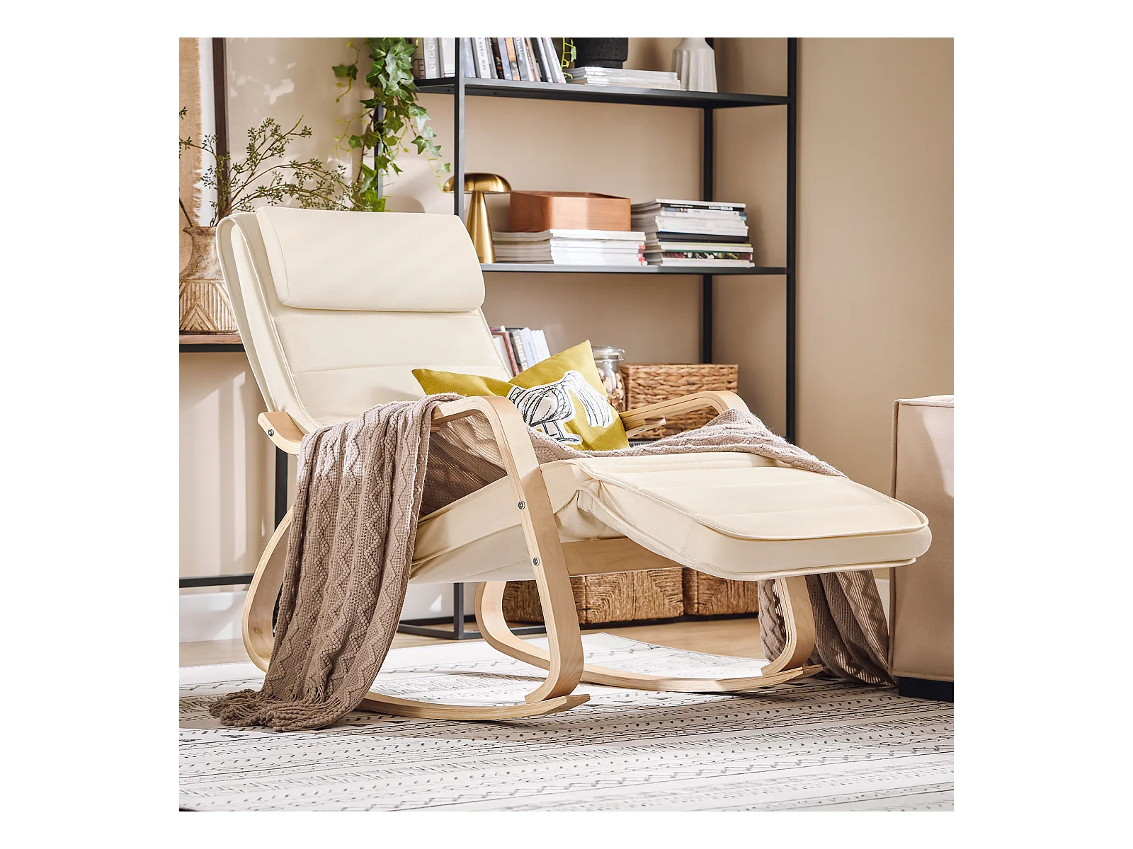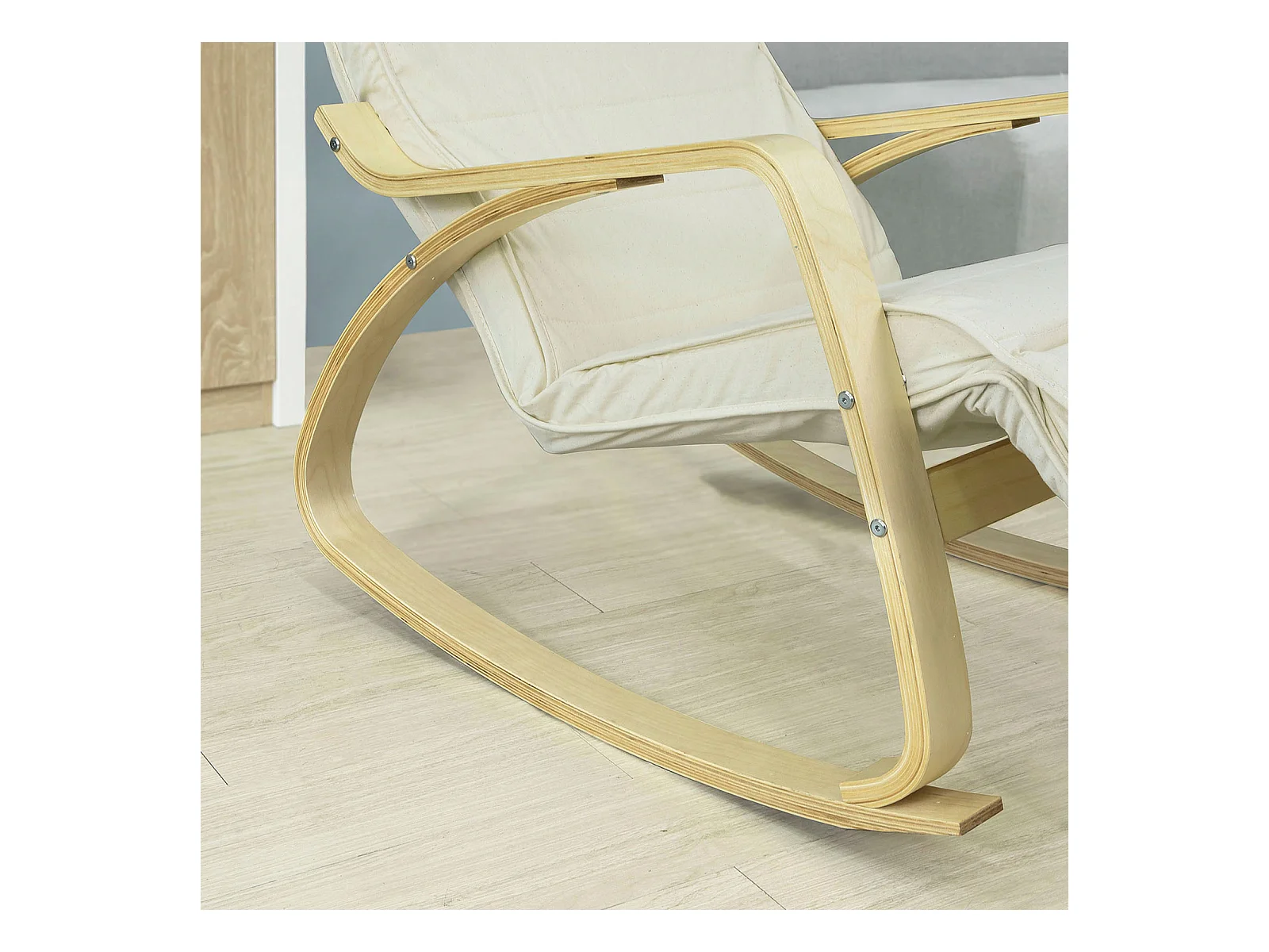Schaukelstuhl mit Fußstütze, modernes Design, Holz, beige (64,5x92x81,5 cm)