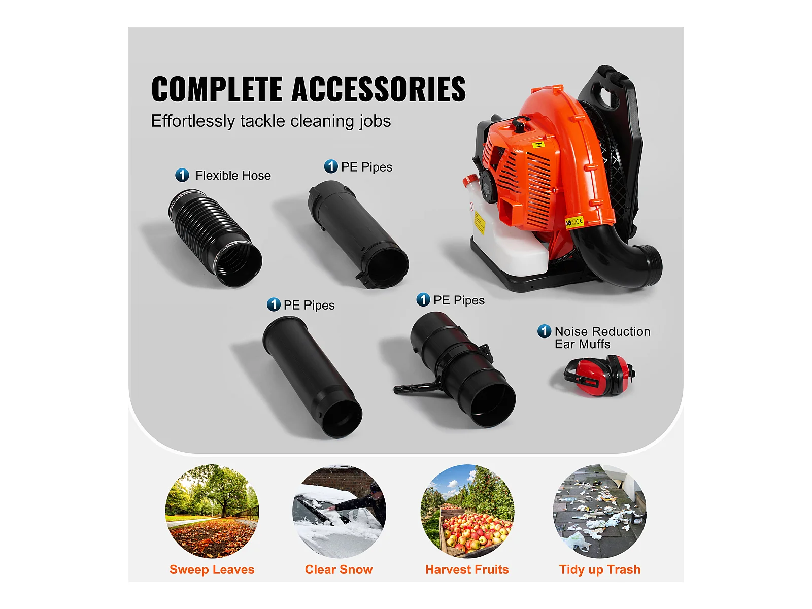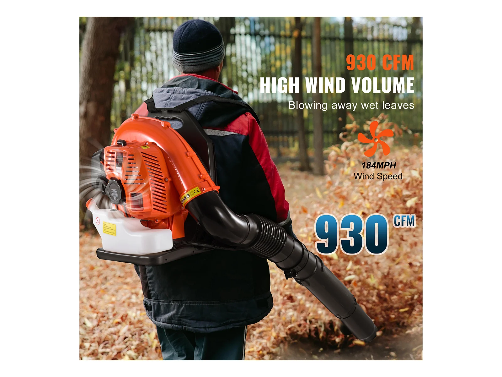 Soffiatore a Zaino a Benzina SucceBuy 63CC a 2 Tempi, Volume D'aria di 1110 CFM