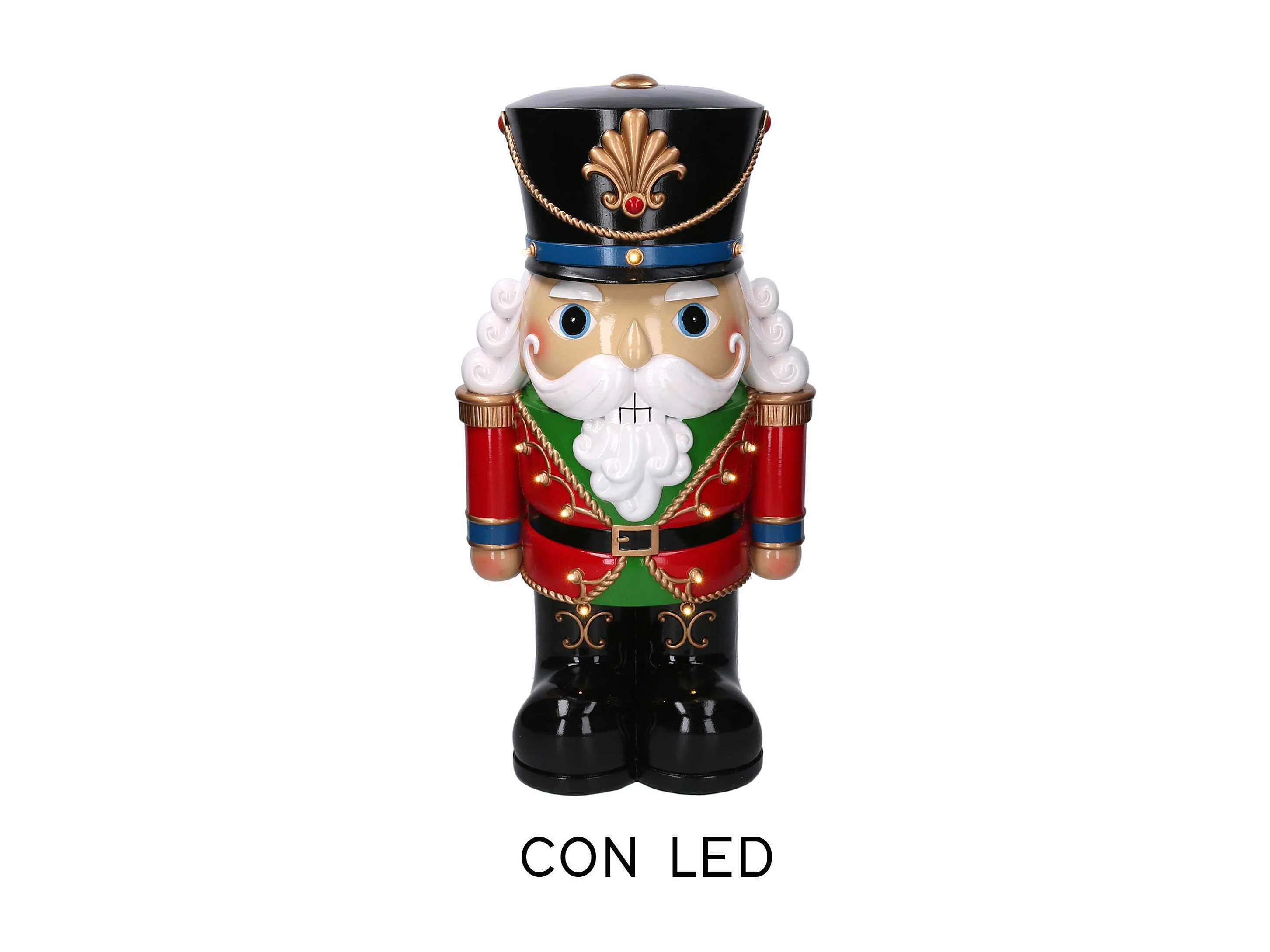 Soldatino in resina con tamburo verde e rosso con led cm27x24h91