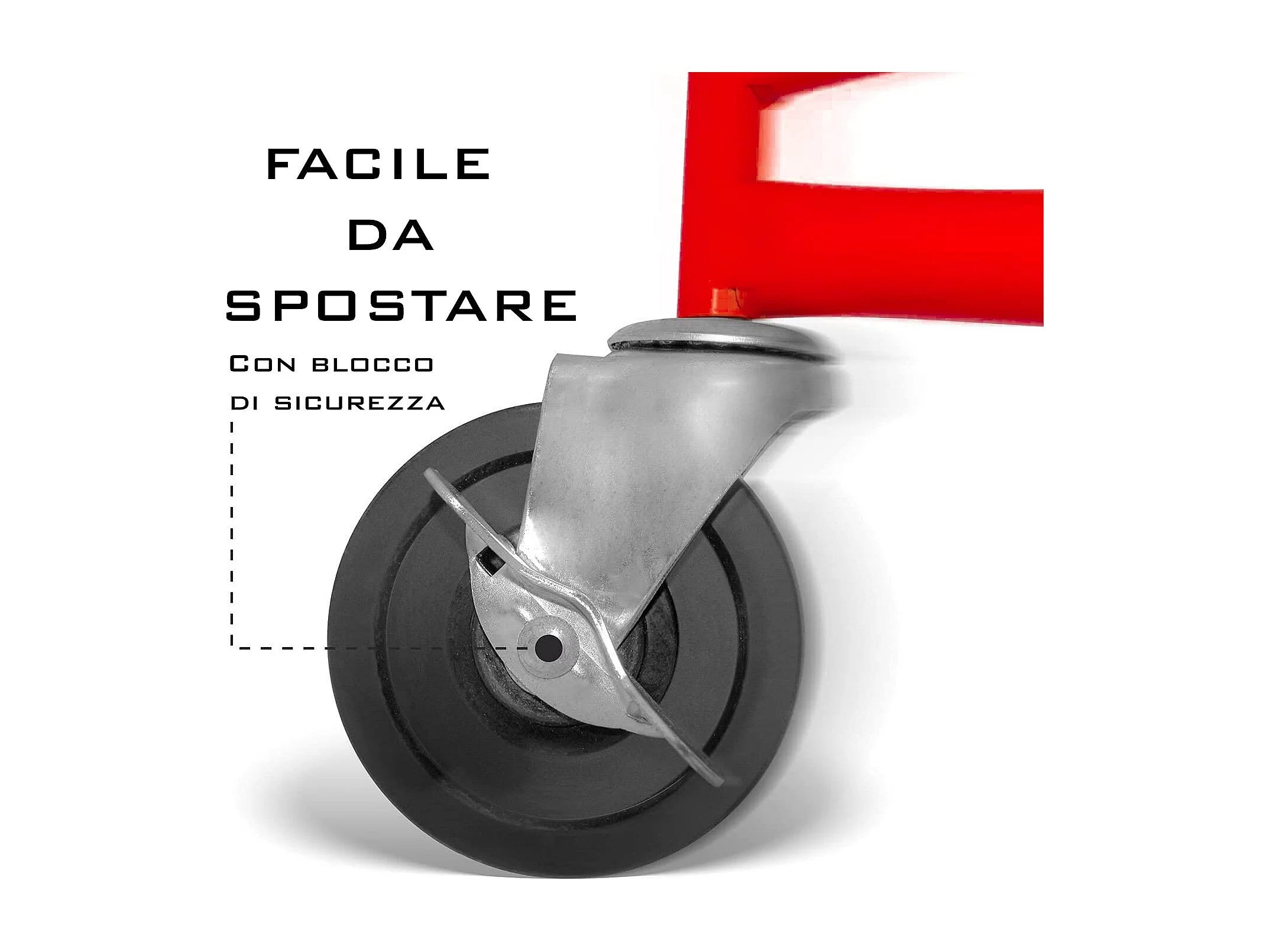Carrello porta attrezzi con cassetto e 3 ripiani in lamiera rossa