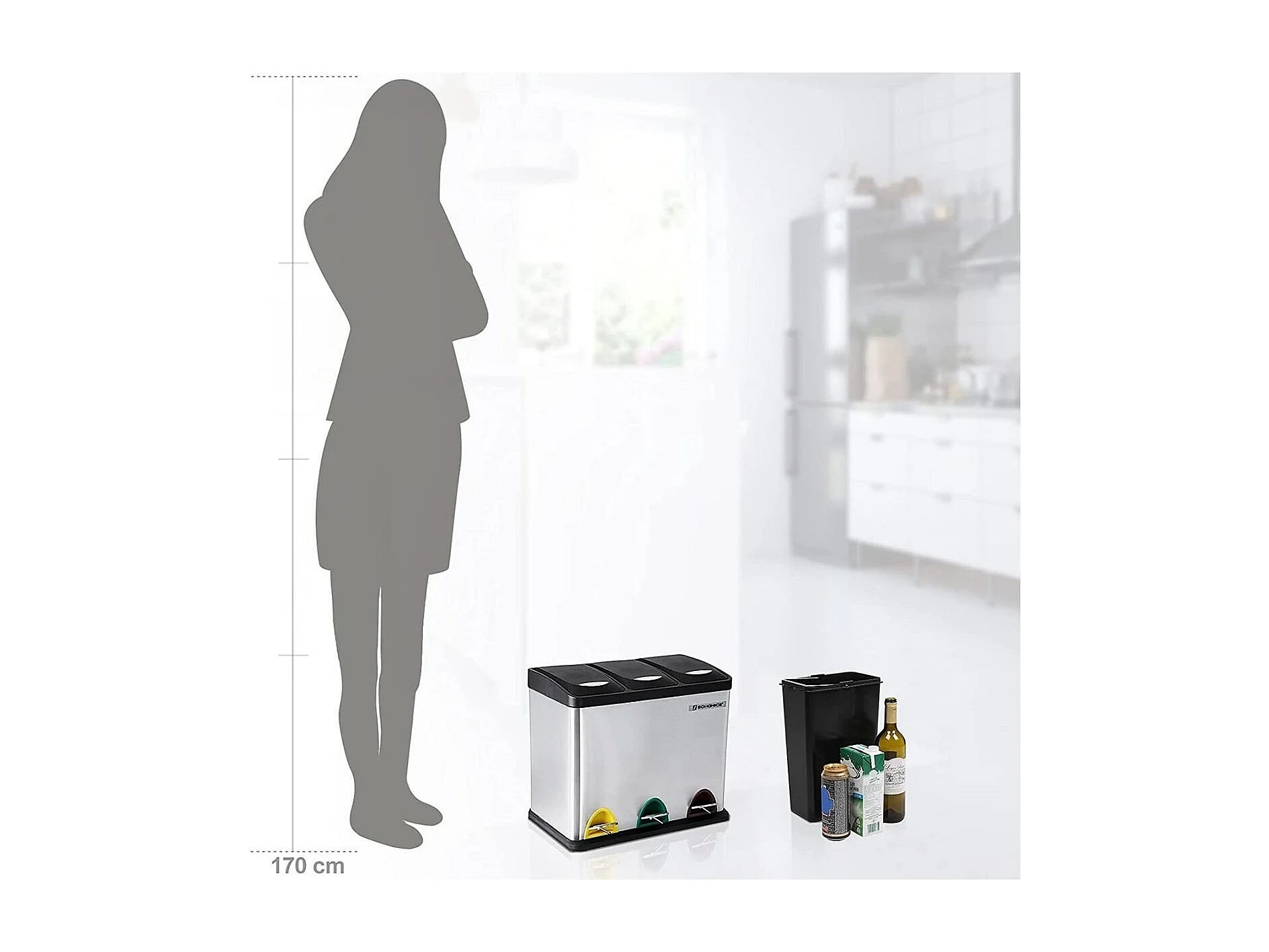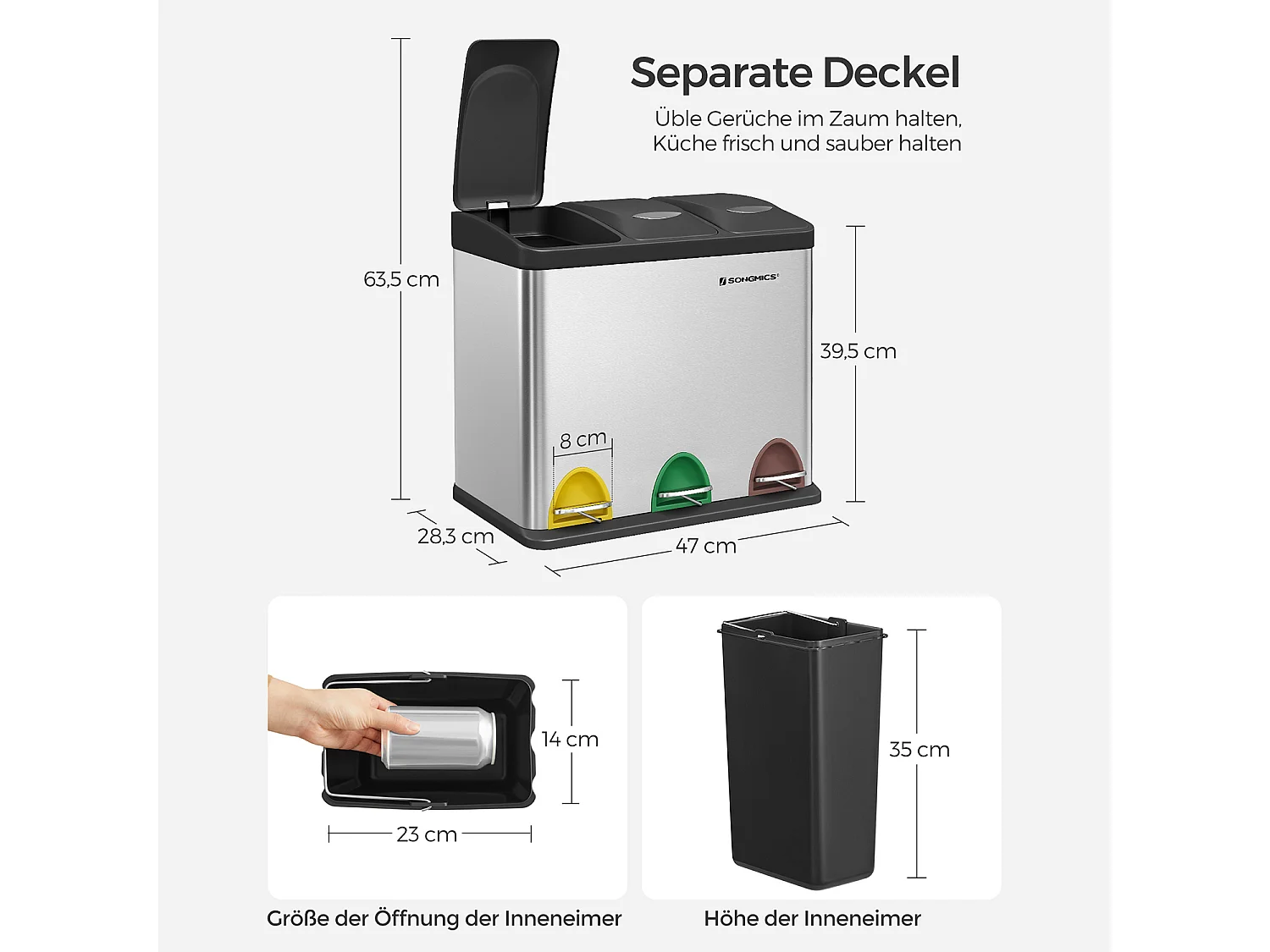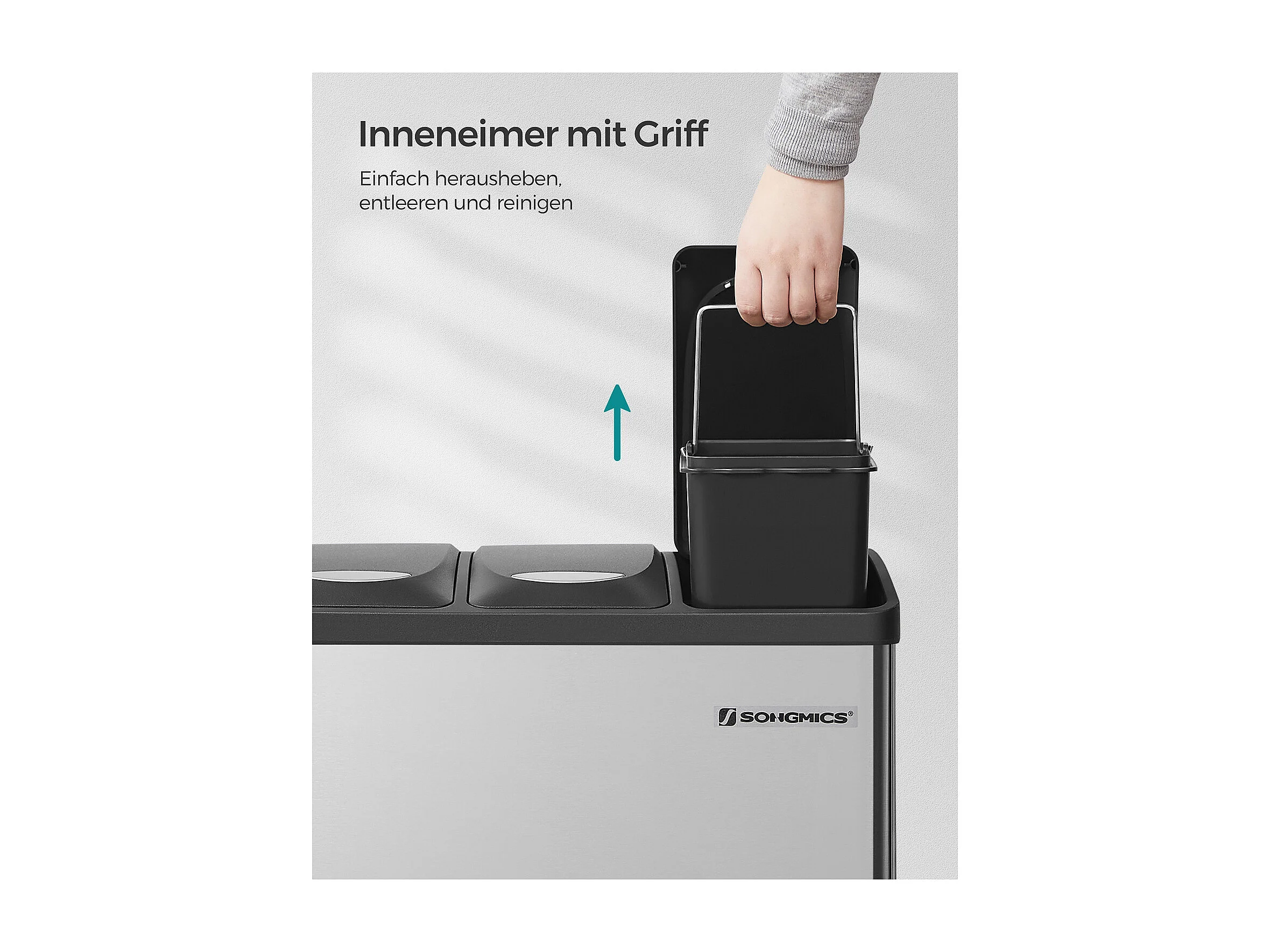 SONGMICS Pattumiera per il riciclaggio, pattumiera a pedale 3 in 1, pattumiera in metallo da 24 litri, pattumiera per la separazione dei rifiuti in cucina, facile