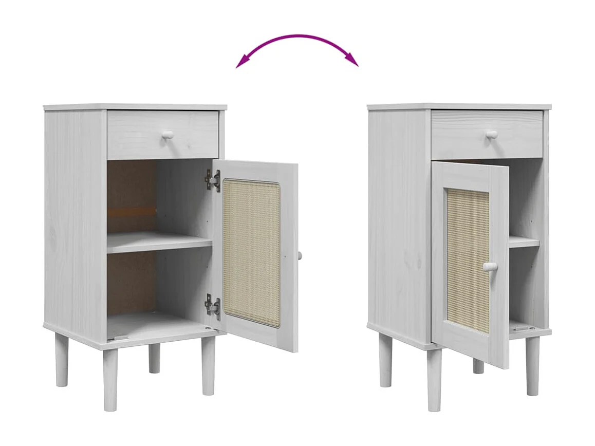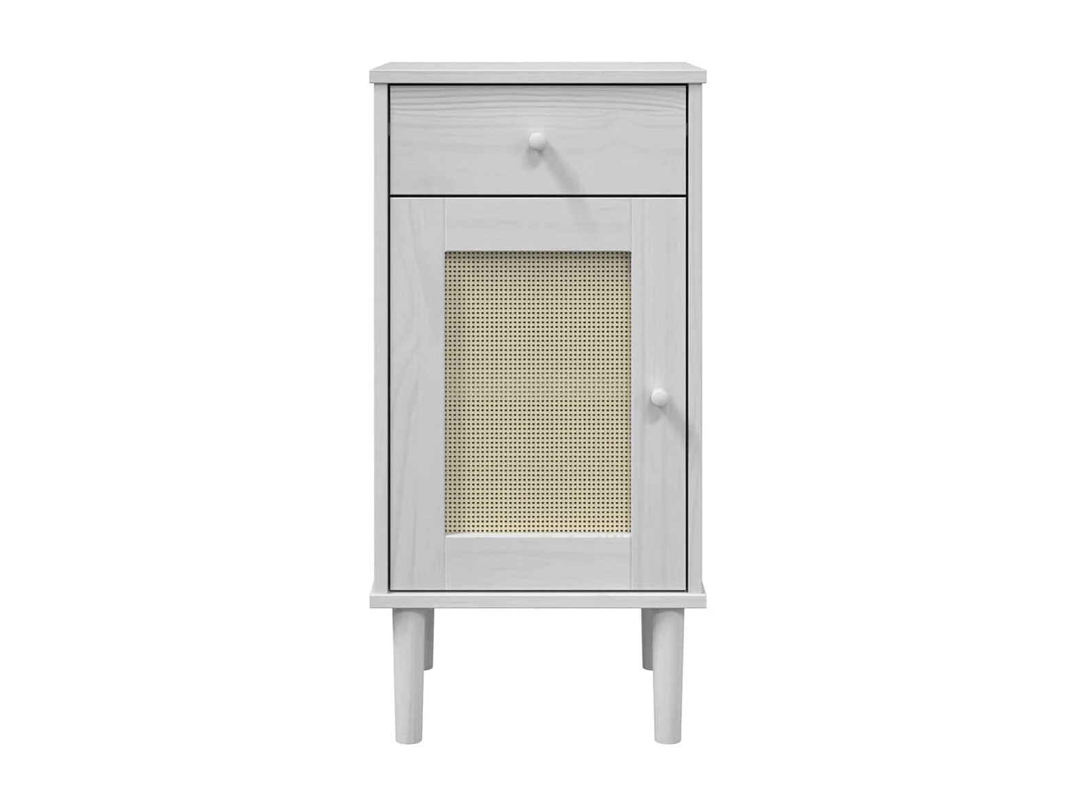 Sophie-Anne-Marie Comodino SENJA Aspetto Rattan Bianco 40x35x80 cm in Legno Pino