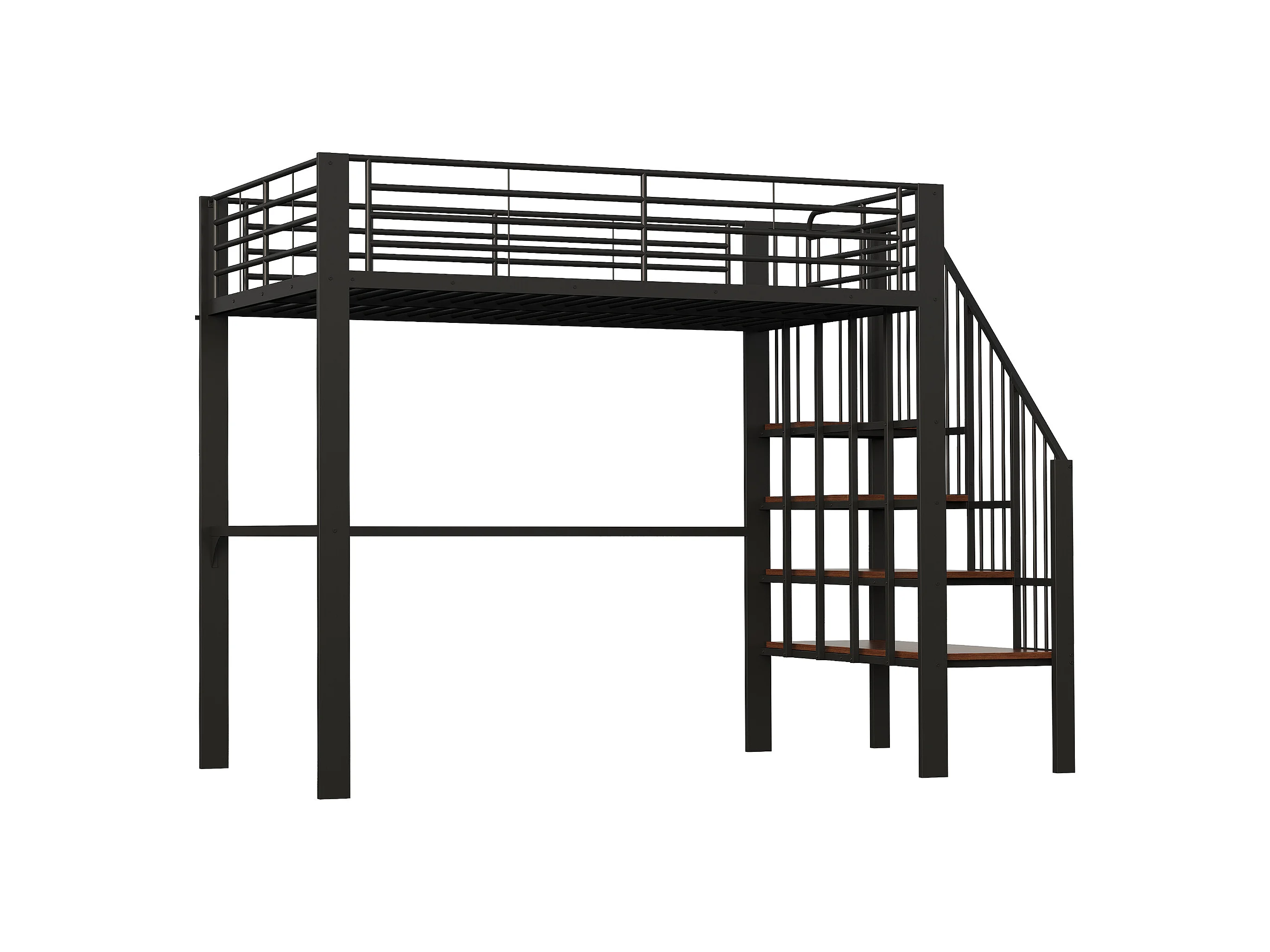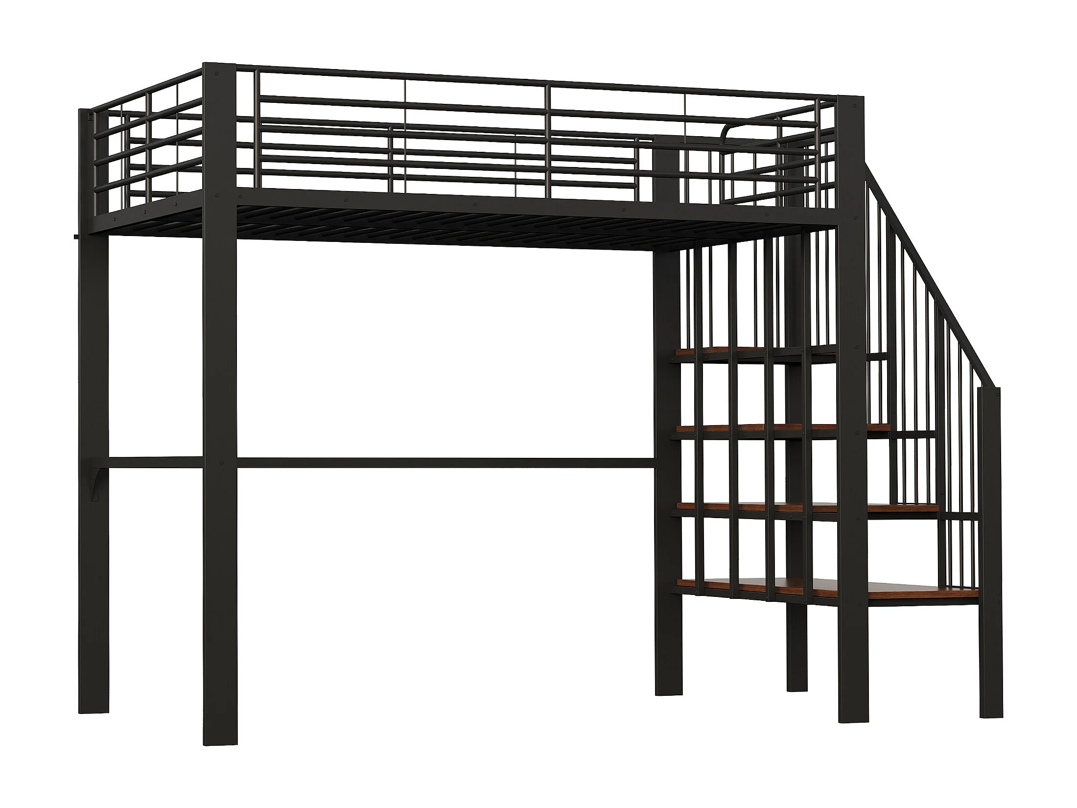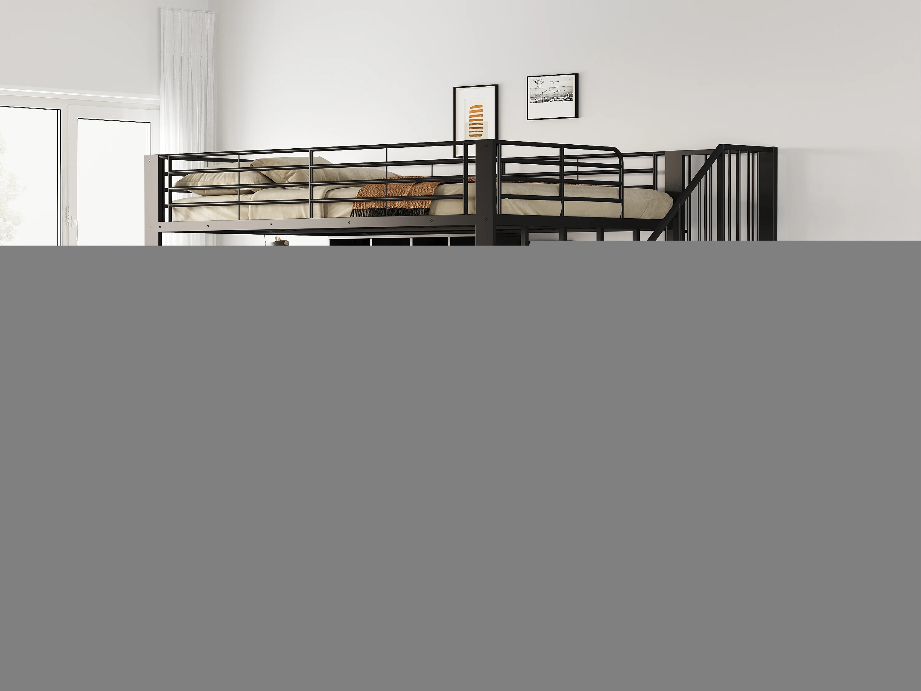 Soppalco illuminato 140x200 in metallo con scala e zona notte per bambini e adulti neri