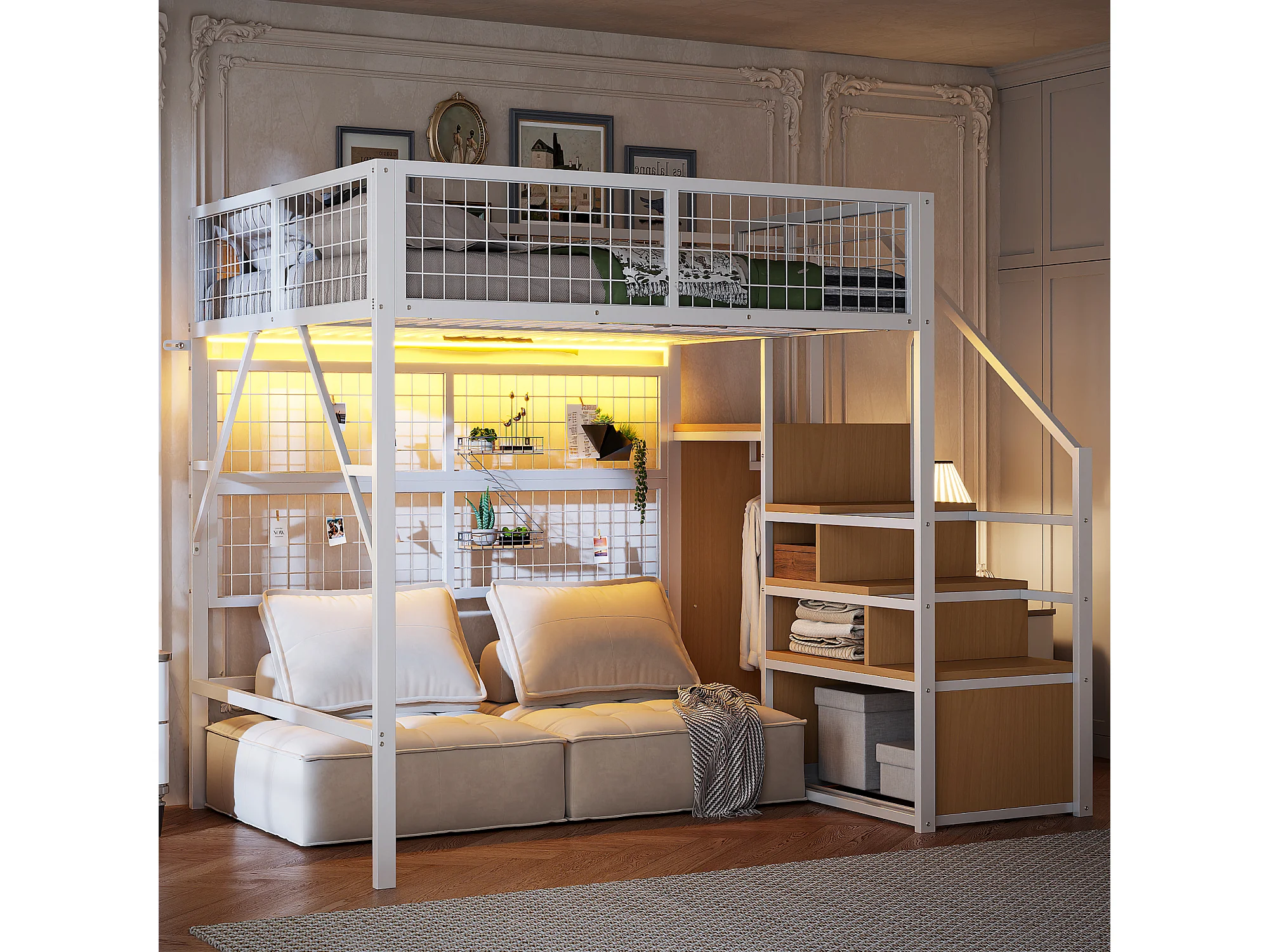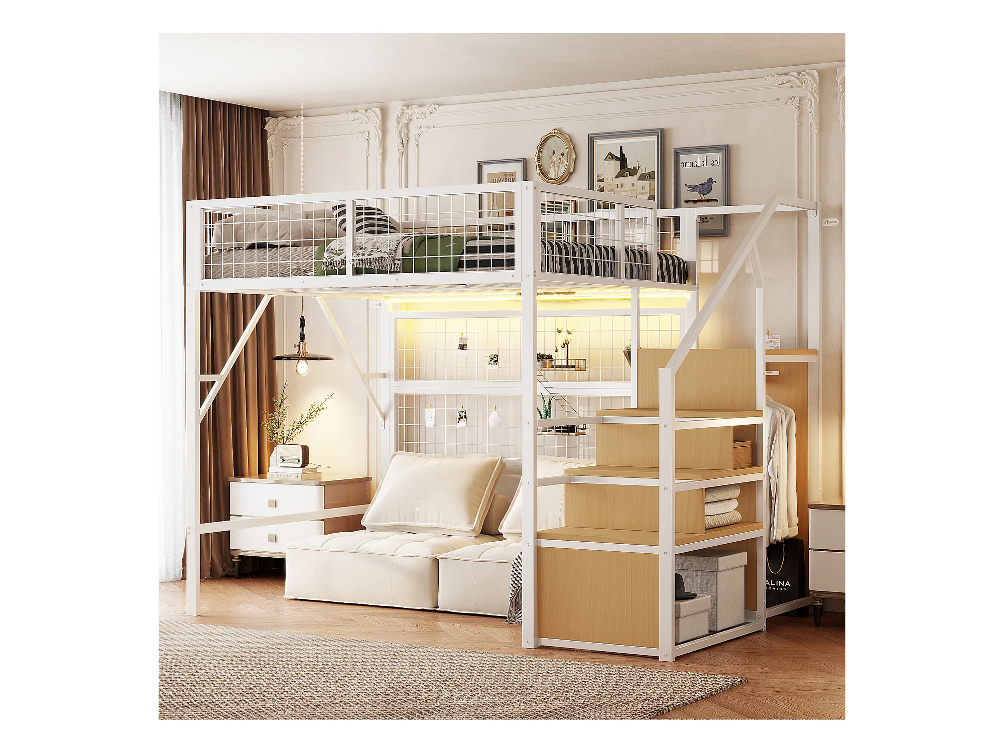 Soppalco illuminato 140x200 in metallo per bambini Scala a LED per armadio bianco