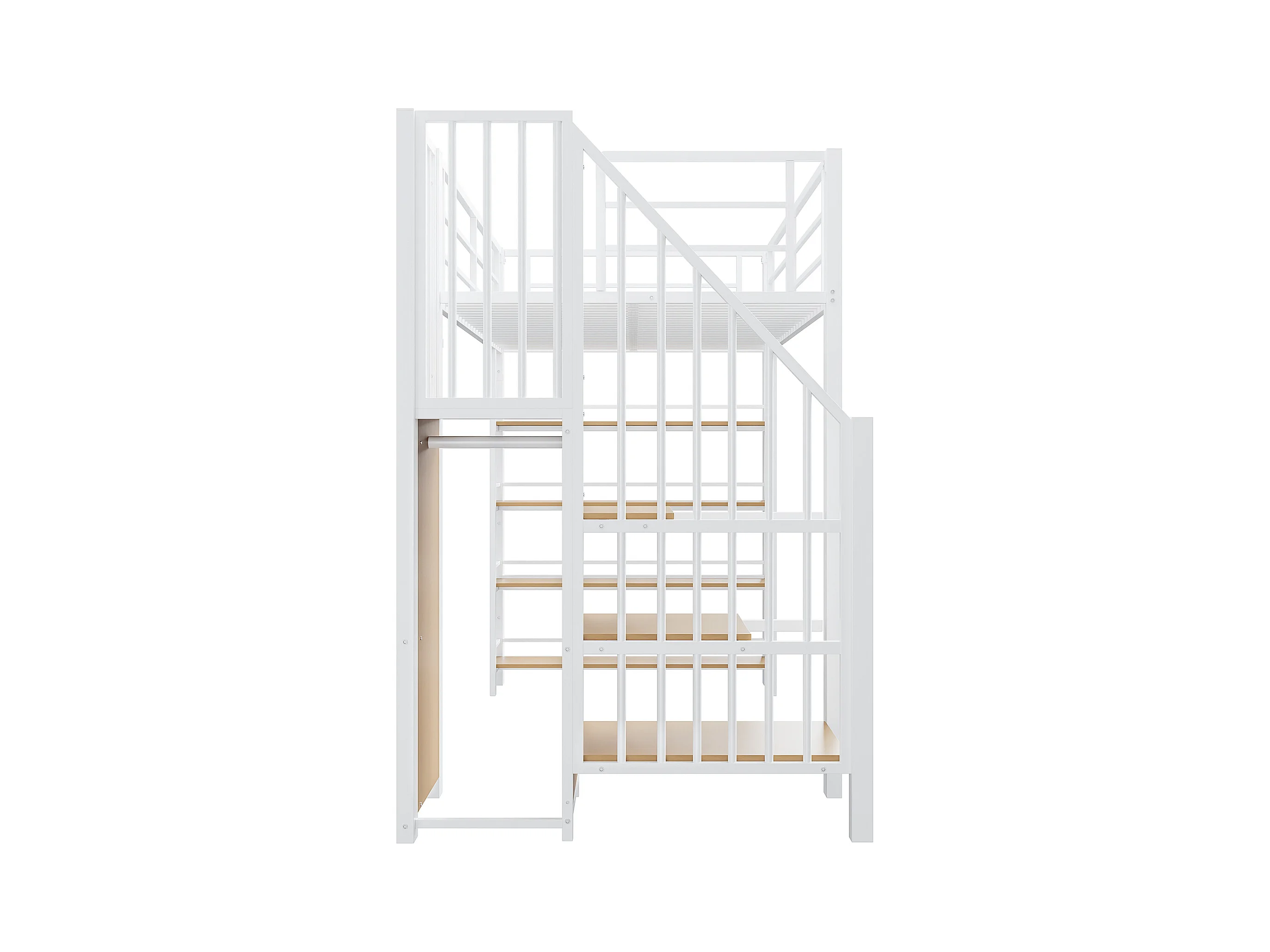 Letto a soppalco bianco e legno 90x200cm con sponde di sicurezza e scaletta, metallo + MDF (senza materasso)