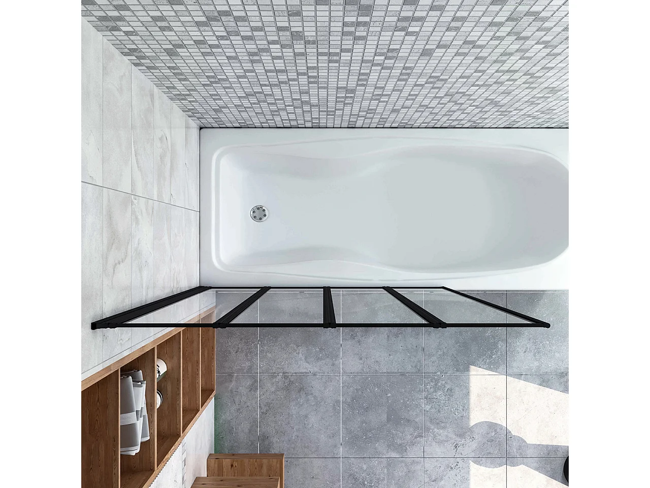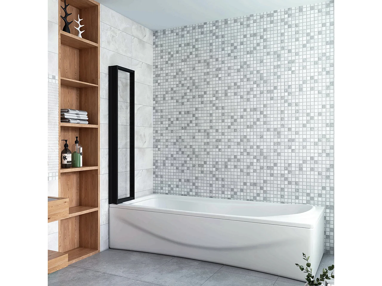 Sopravasca 90x140 cm Parete Doccia per Vasca 2 Antine Pieghevoli a Libro Vetro Temperato Trasparente Da 4 mm Profilo Nero Opaco