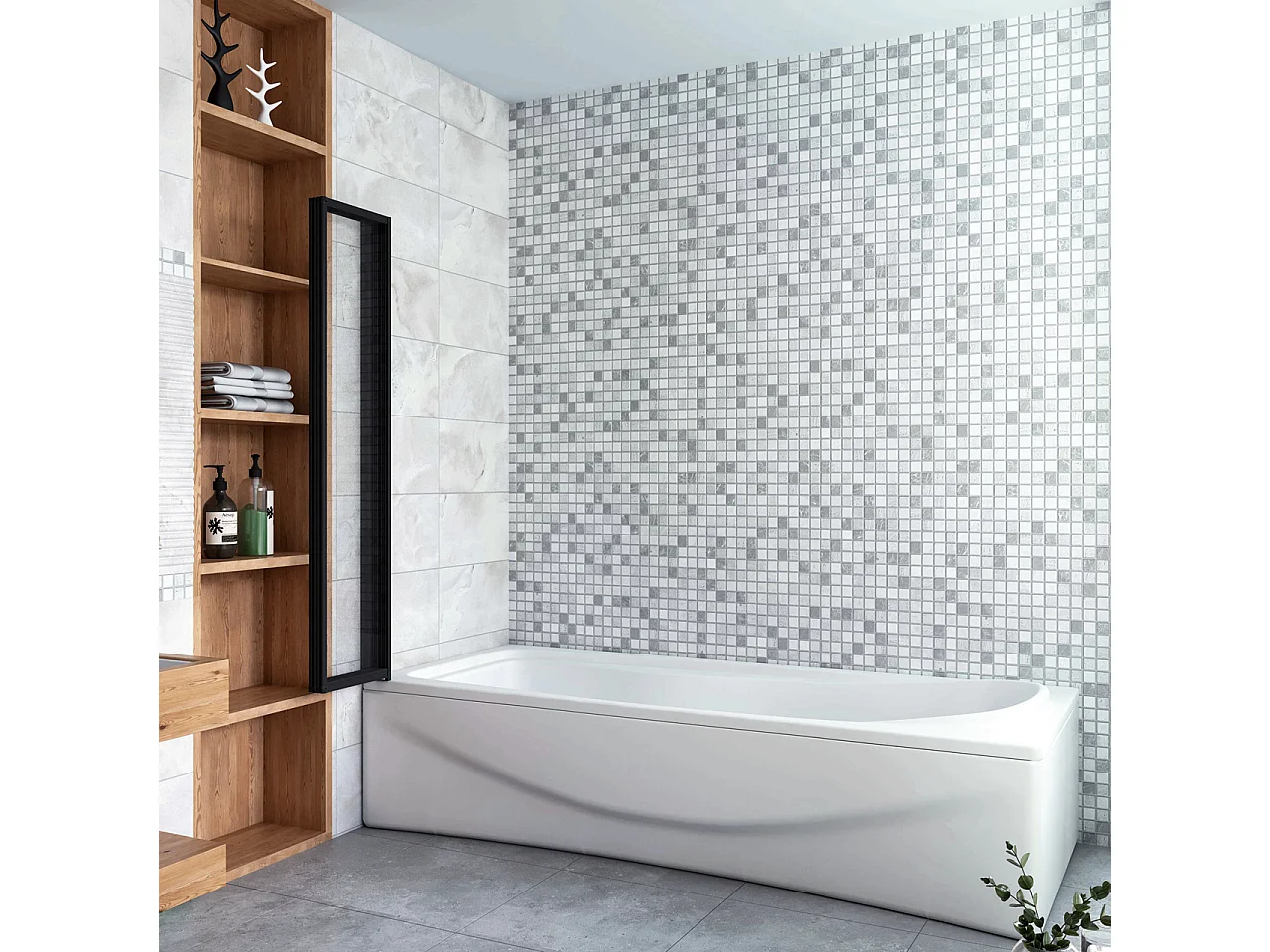 Parete Doccia Per Vasca con Lato Fisso 130x65 cm H.140 cm 3 Ante Pieghevoli a Libro in Vetro Temperato 6 mm Trasparente Anticalcare Telaio Nero Opaco