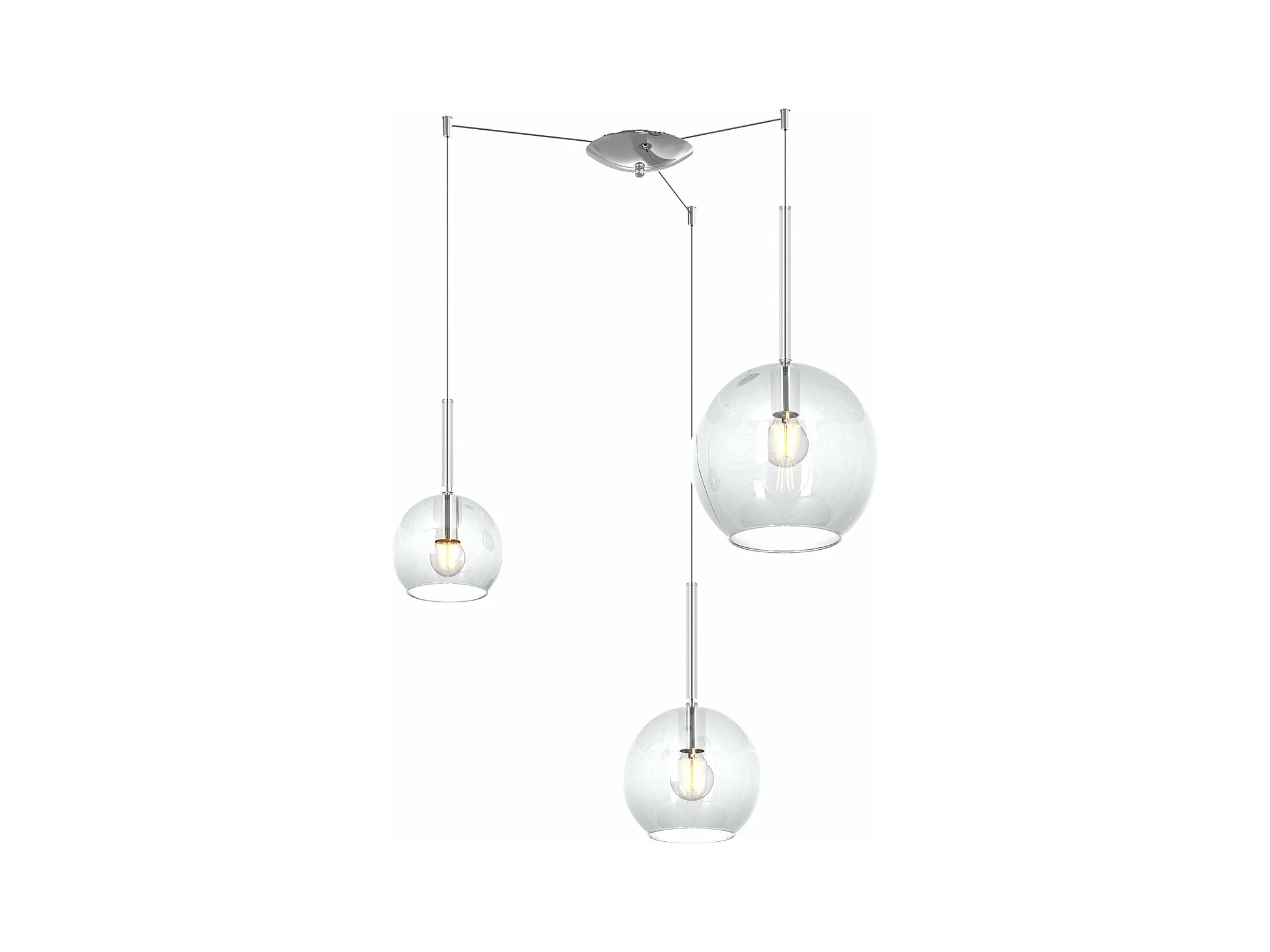 Sosp. Cromo Spostabile 3 Luci Vetri (1 X Grande+ 1 X Medio+ 1 X Piccolo)Tutti Trasparente