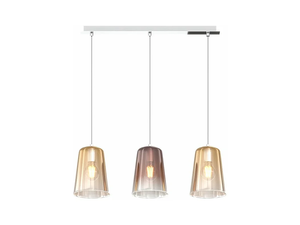 Sospensione Contemp. Rett. Shaded Metallo Cromo Vetro Ambra E Rame 3 Luci E27