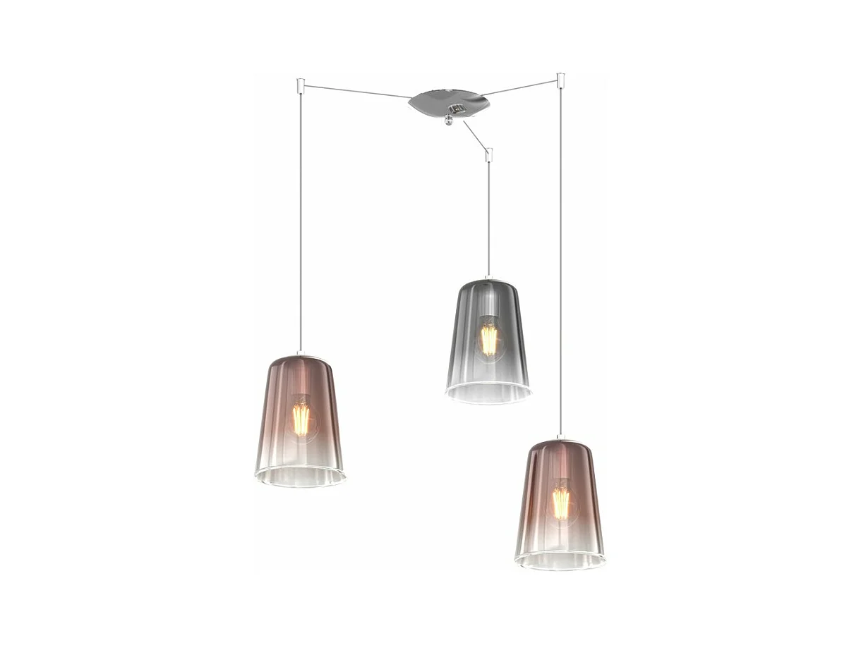 Sospensione Contemporanea Shaded Metallo Cromo Vetro Rame E Cromo 3 Luci E27