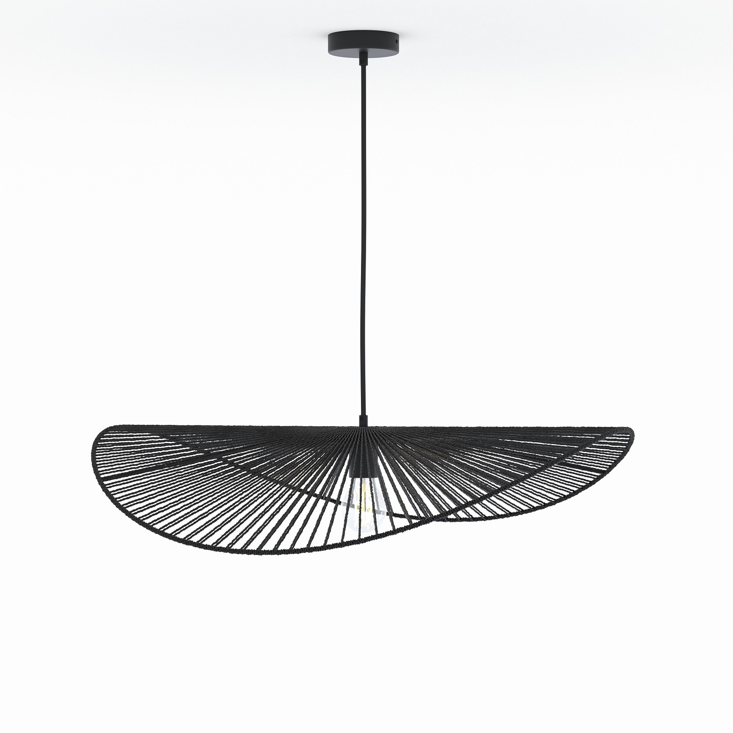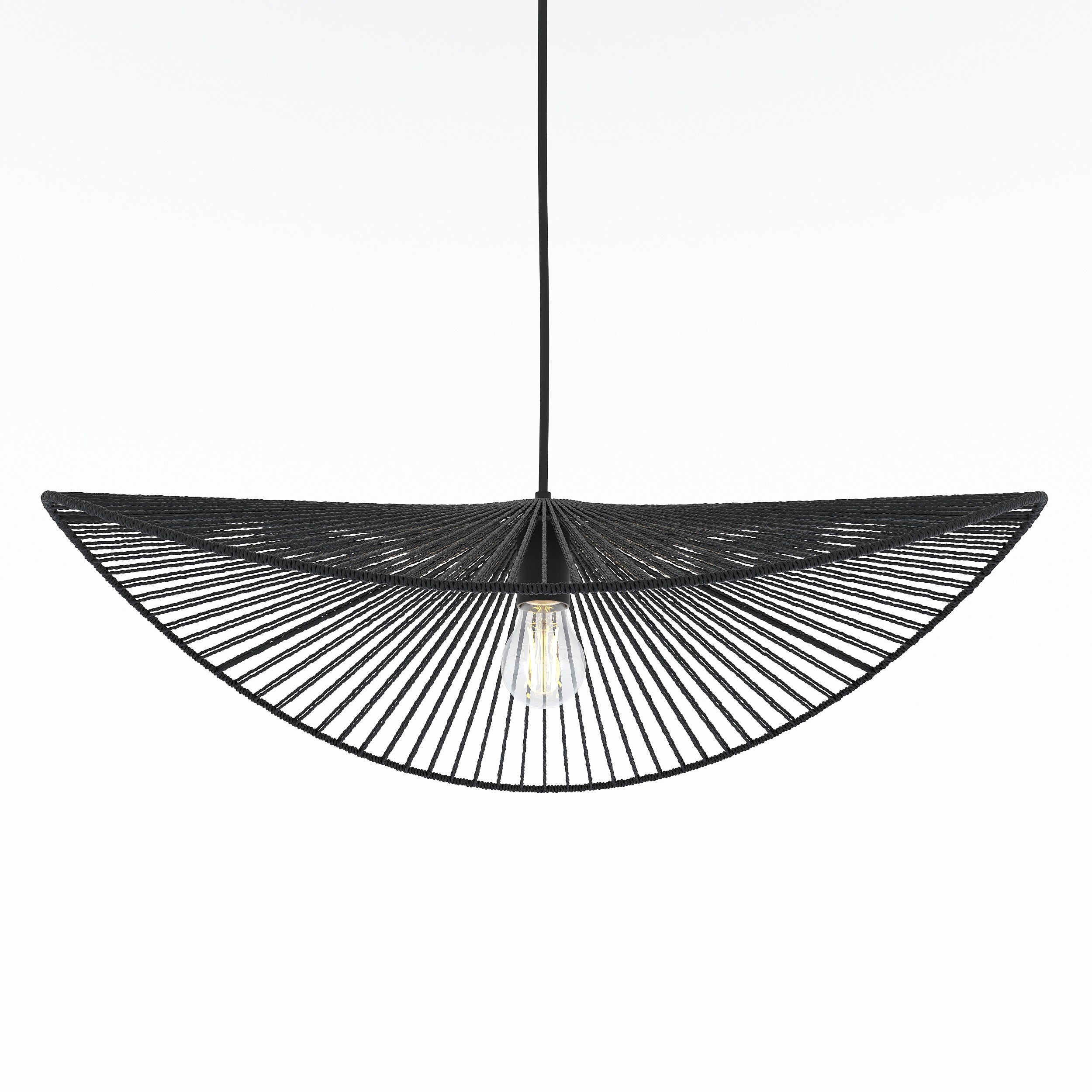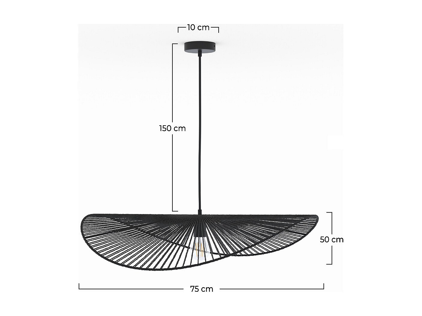 Lampada a sospensione, metallo, nero e corda, D 35 cm, Runa