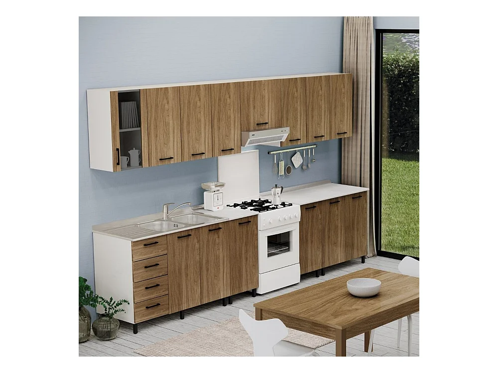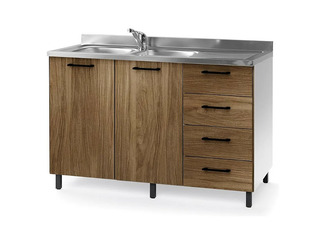 Sottolavello con cassetti e lavello 120 cm noce naturale destro