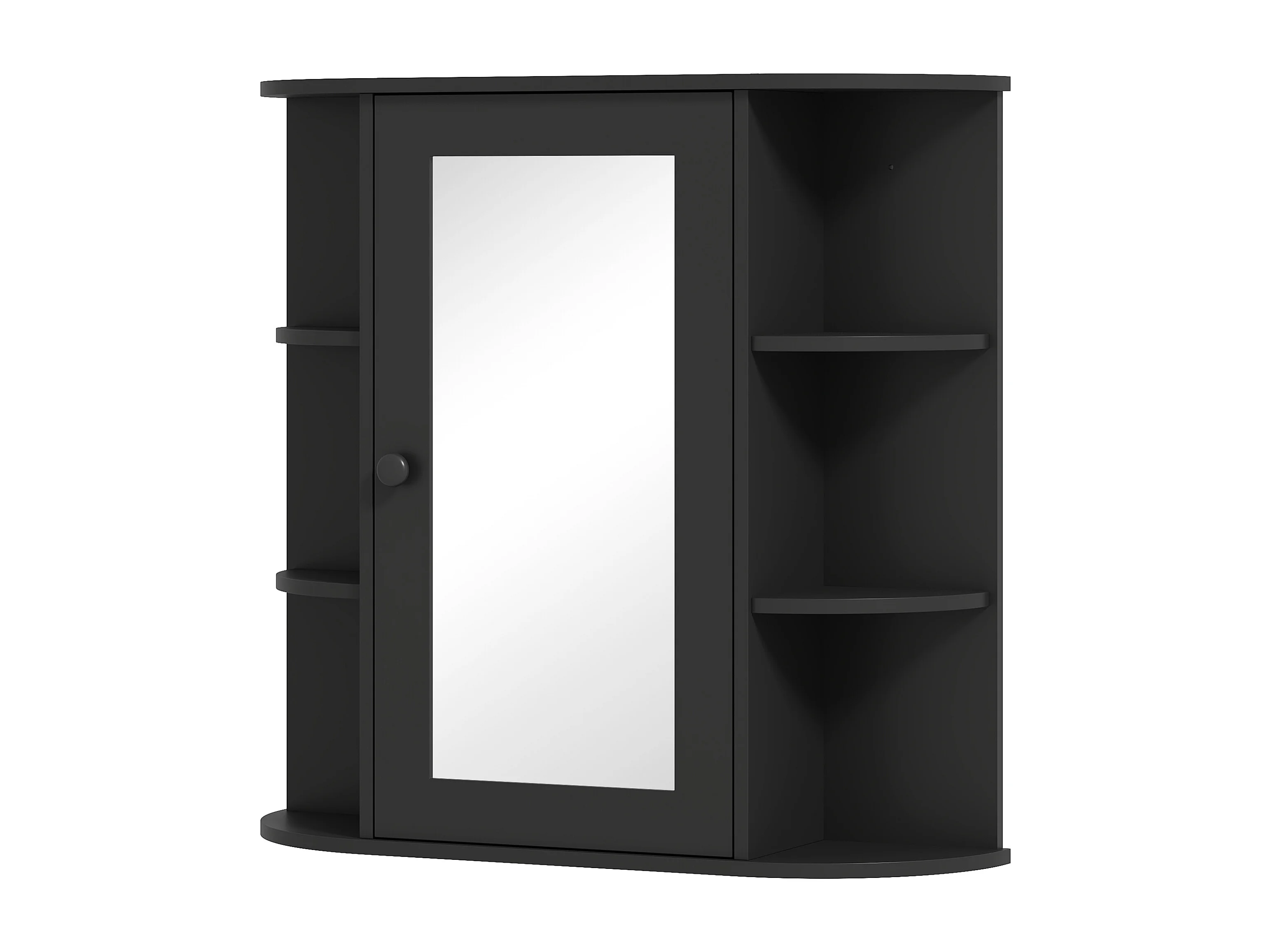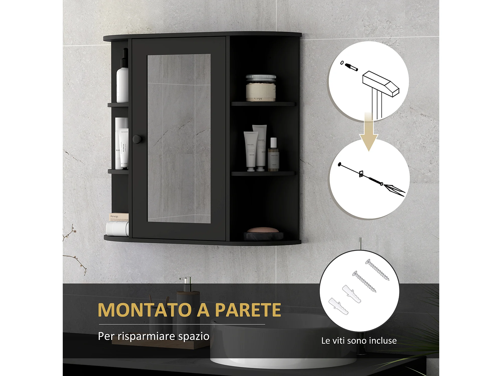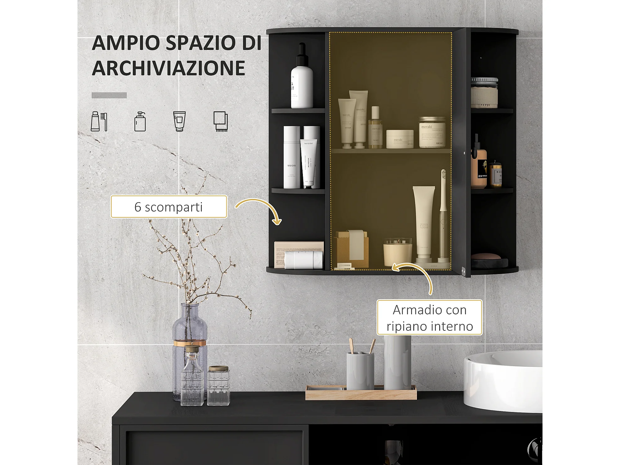 Specchiera bagno a 6 ripiani aperti e 2 chiusi in mdf e vetro nero