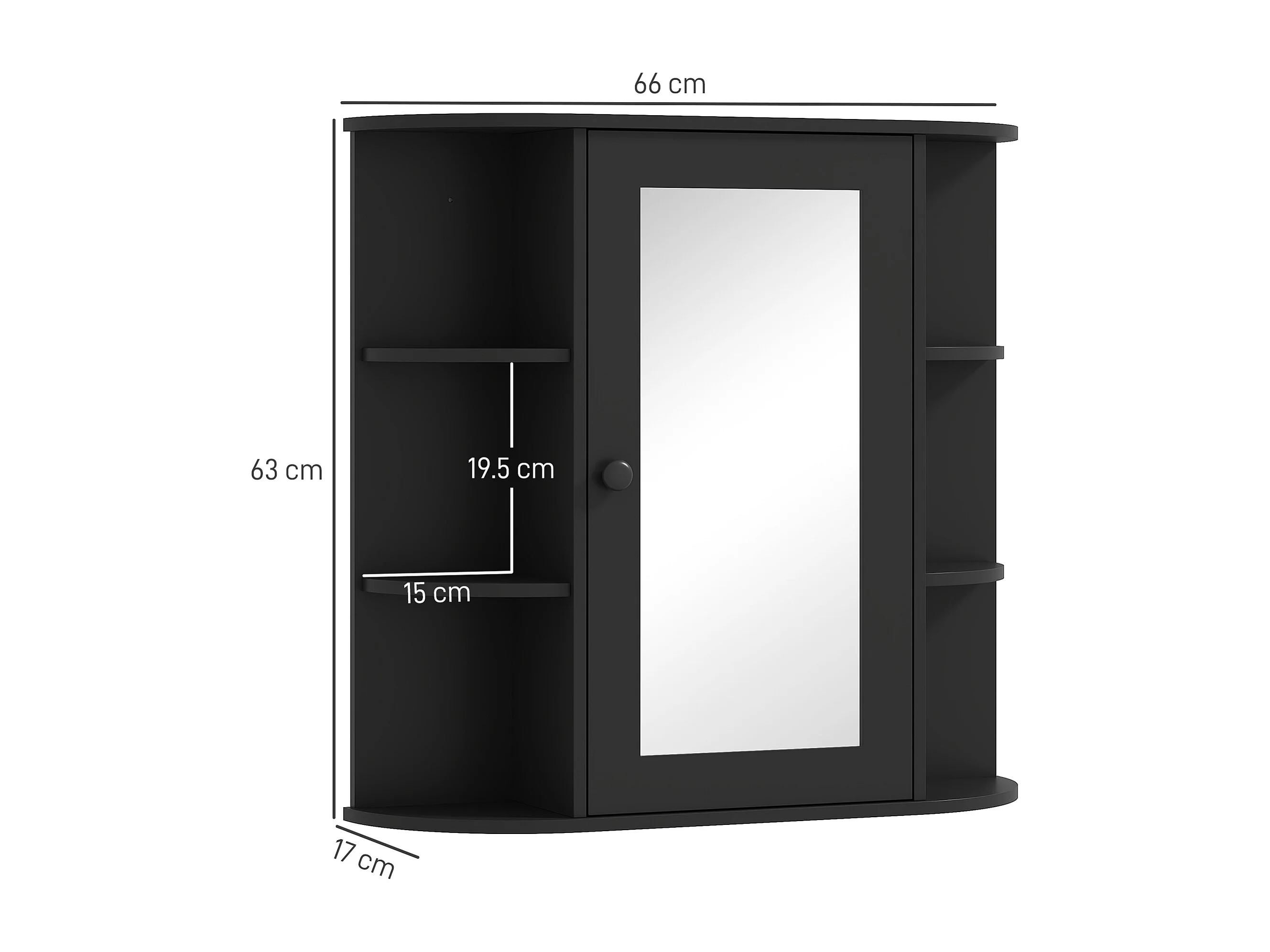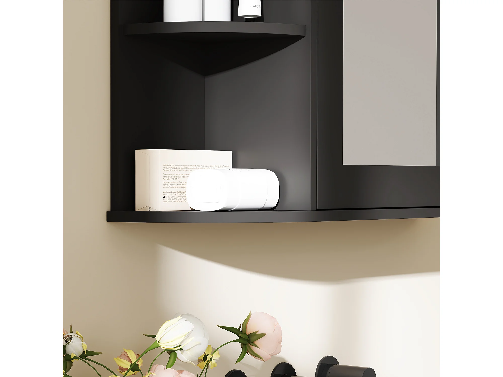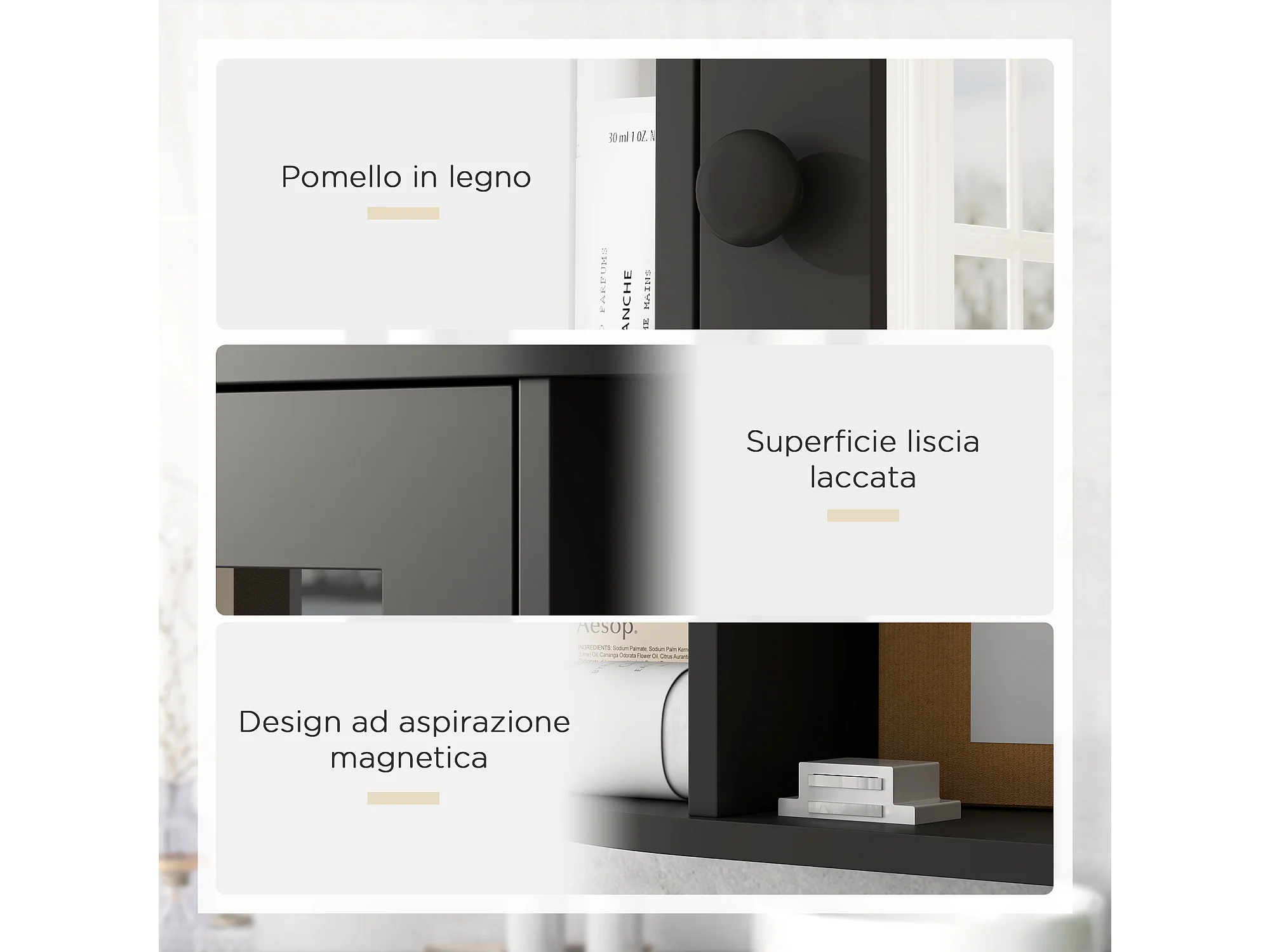 Specchiera bagno a 6 ripiani aperti e 2 chiusi in mdf e vetro nero